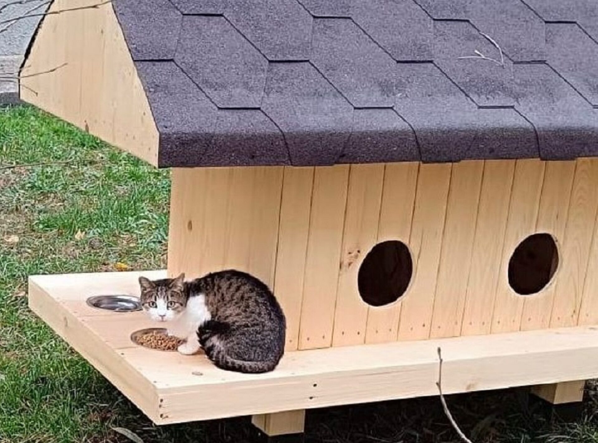 Inițiativa de construire și amplasare de căsuțe pentru pisici, printre blocuri, în municipiul Suceava, a fost primită bine, cel puțin de o parte dintre locuitorii din zonele respective, care le-au pus hrană și apă în castroane, ba chiar și materiale textile, să le țină cald.