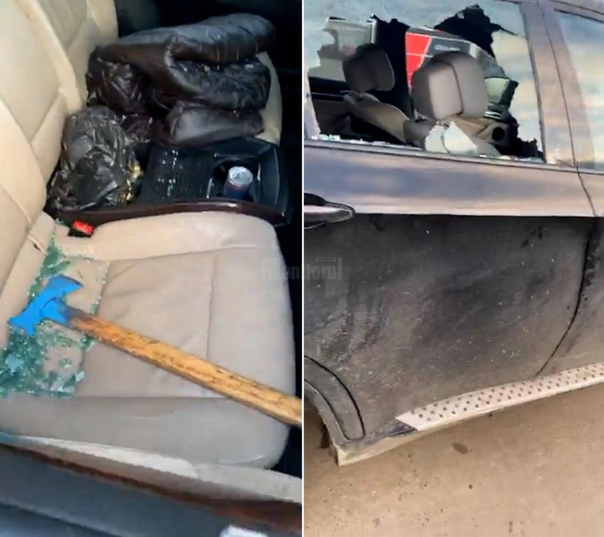 Ulterior, în timp ce era la volan, activistul a văzut cum de el și de mașină se apropie un bărbat furios, cu un ciocan în mână.