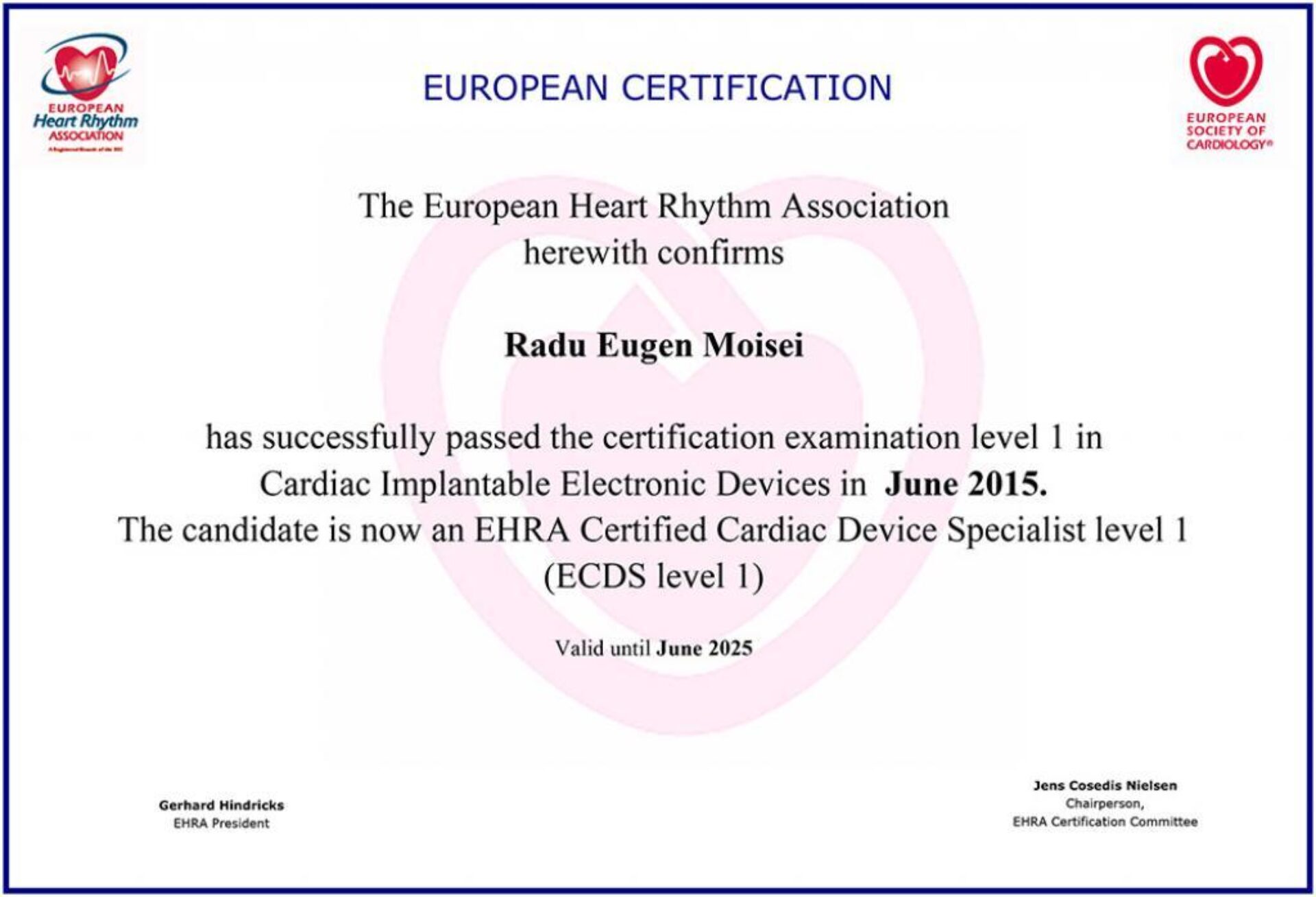 Prima intervenție de implant de stimulator cardiac a fost efectuată la Spitalul de Urgență ”Sfântul Ioan cel Nou” de la Suceava miercuri, 6 iulie a.c., de un tânăr medic recrutat de la Clinica de Cardiologie a Institutului de Boli Cardiovasculare Iași, în luna mai a acestui an. Doctorul Radu Moisei are 36 de ani și este unul dintre cei mai puțin de zece medici din România care are dublă acreditare de la Societatea Europeană de Cardiologie, pentru electrofiziologie invazivă și stimulare cardiacă și dispozitive implantabile.