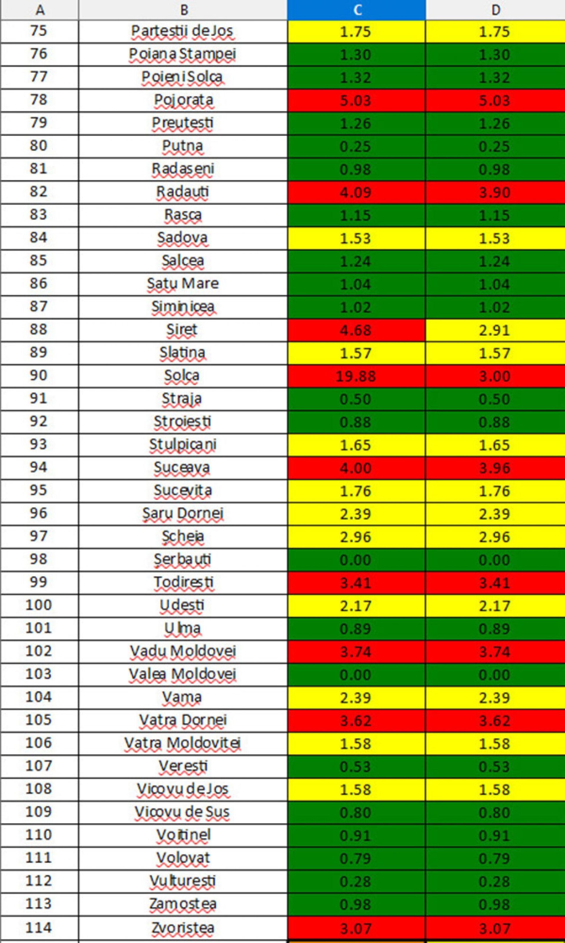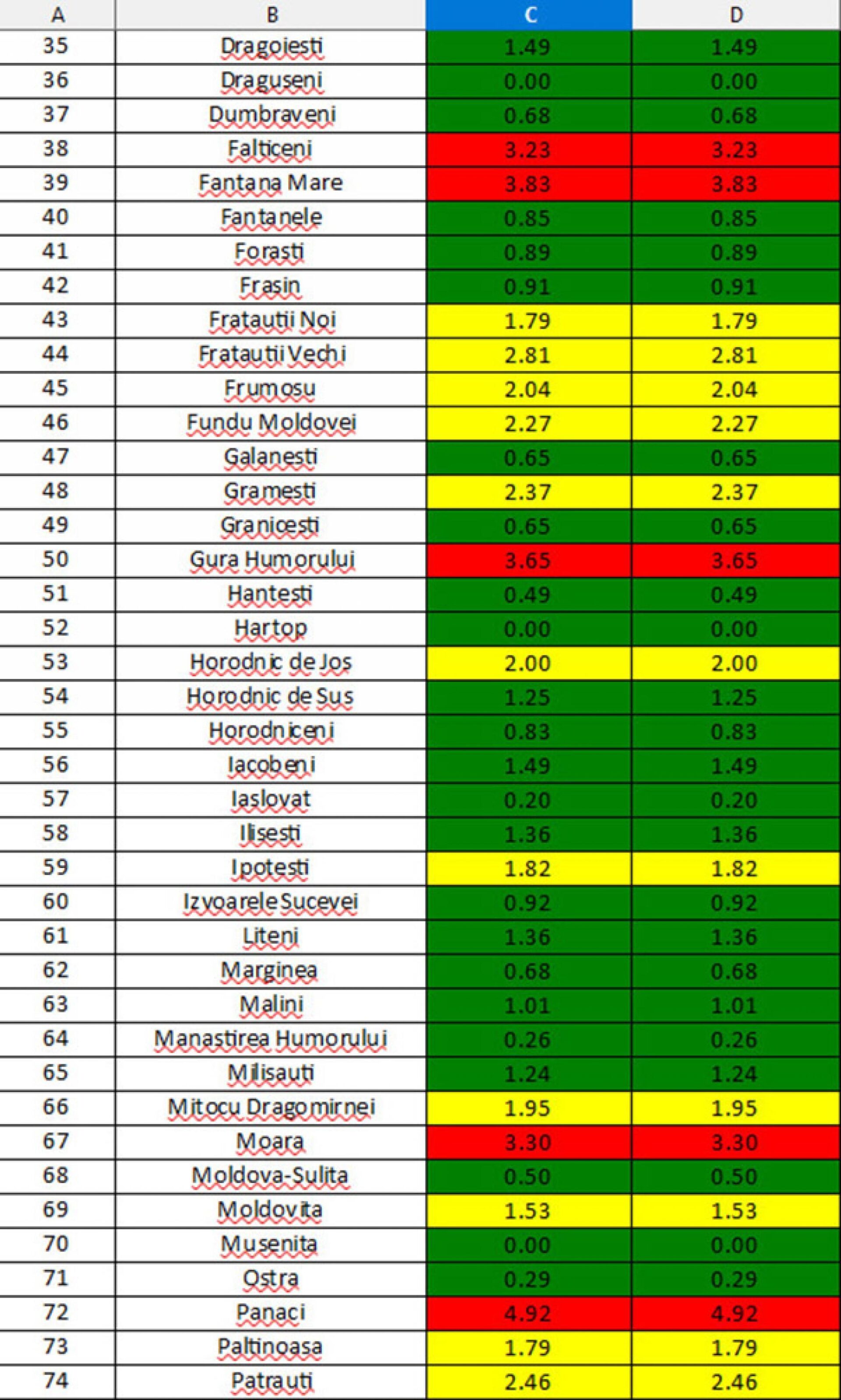 Incidența cazurilor de Covid în fiecare localitate din județul Suceava