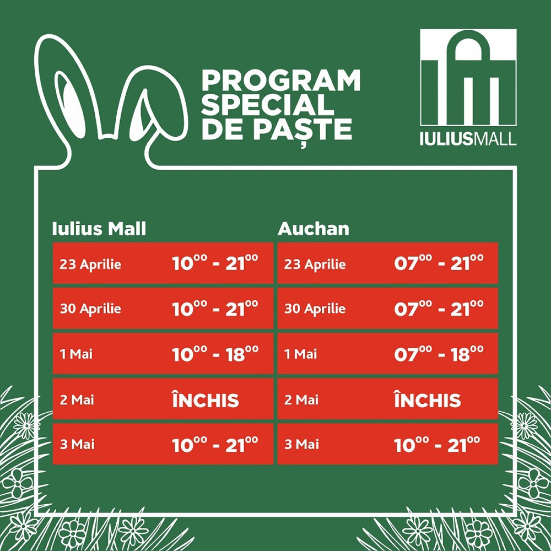 Iulius Mall și Auchan, deschise din a doua zi de Paște