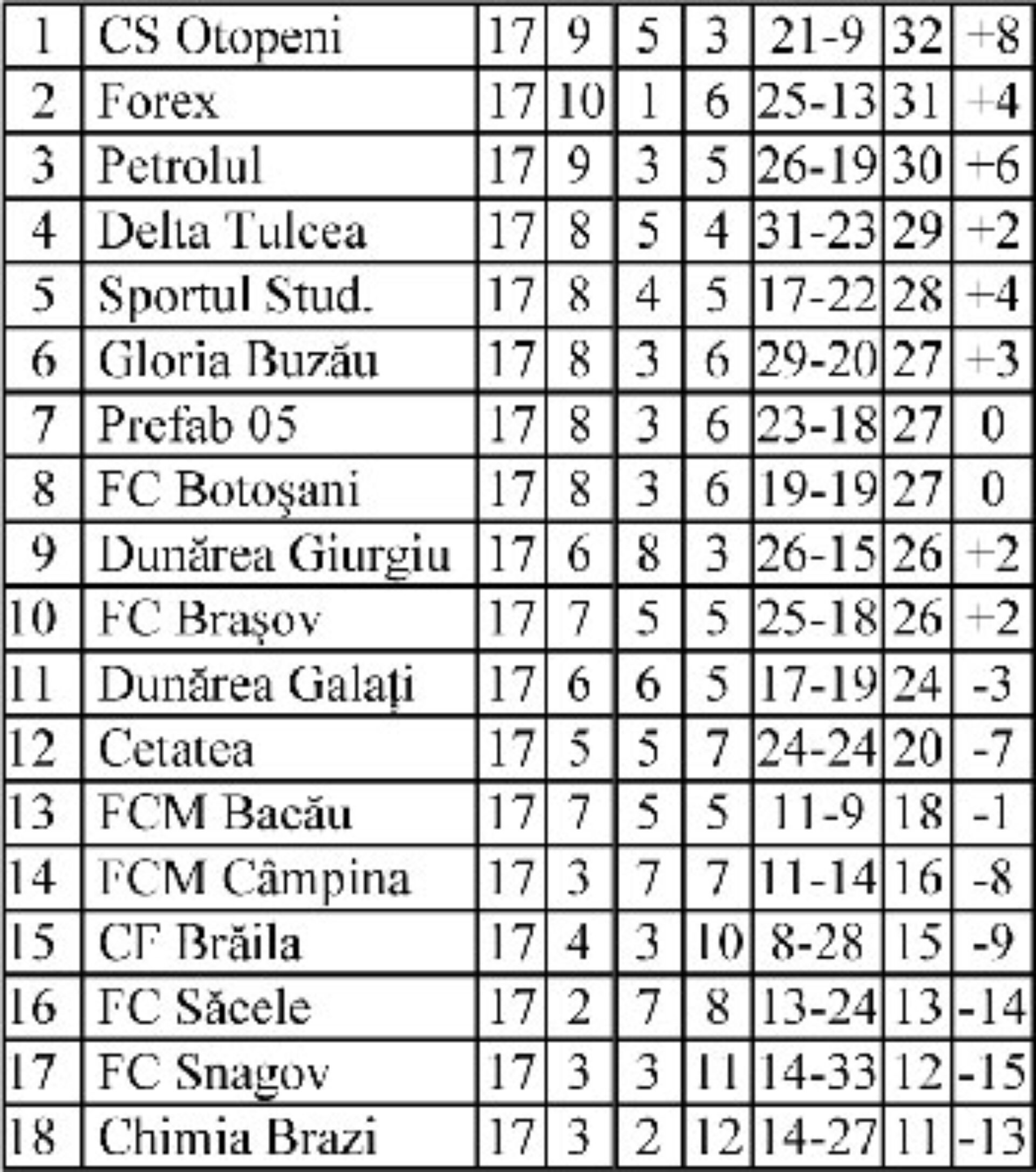 La finalul turului, clasamentul Seriei I din Liga a II-a arată astfel: