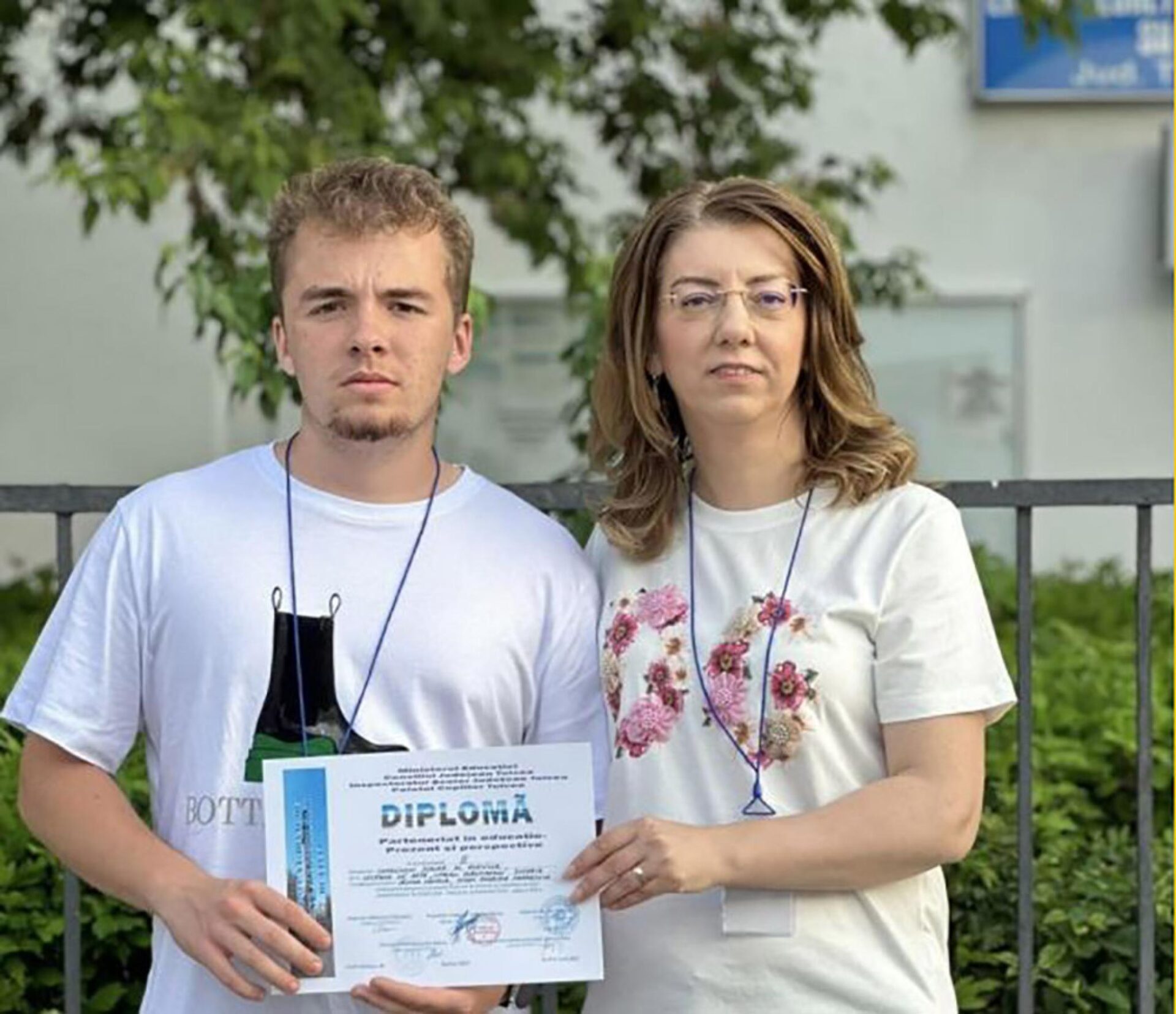 Elevul Lucian Drăgoi și prof. Gabriela Hisem