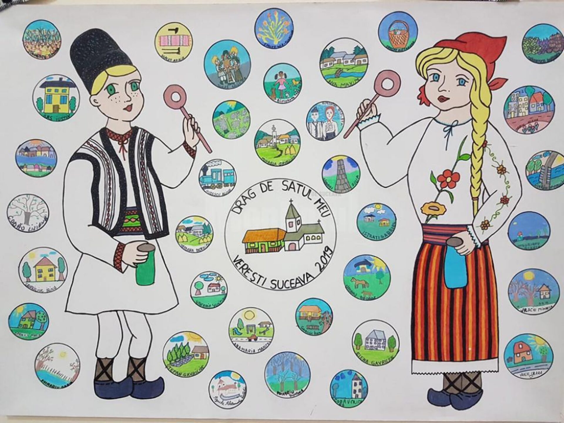 În cadrul proiectului, la Verești s-au organizat mai multe activități și ateliere: desene și texte tip eseu cu titlul „De ce mi-e drag satul meu?”; organizarea unui workshop, unde elevi și părinți au realizat obiecte cu simboluri tradiționale locale; colajul „Drag de satul meu”, unde fiecare elev și părinte implicat în proiect a desenat câte un simbol specific satului în care s-a născut etc.