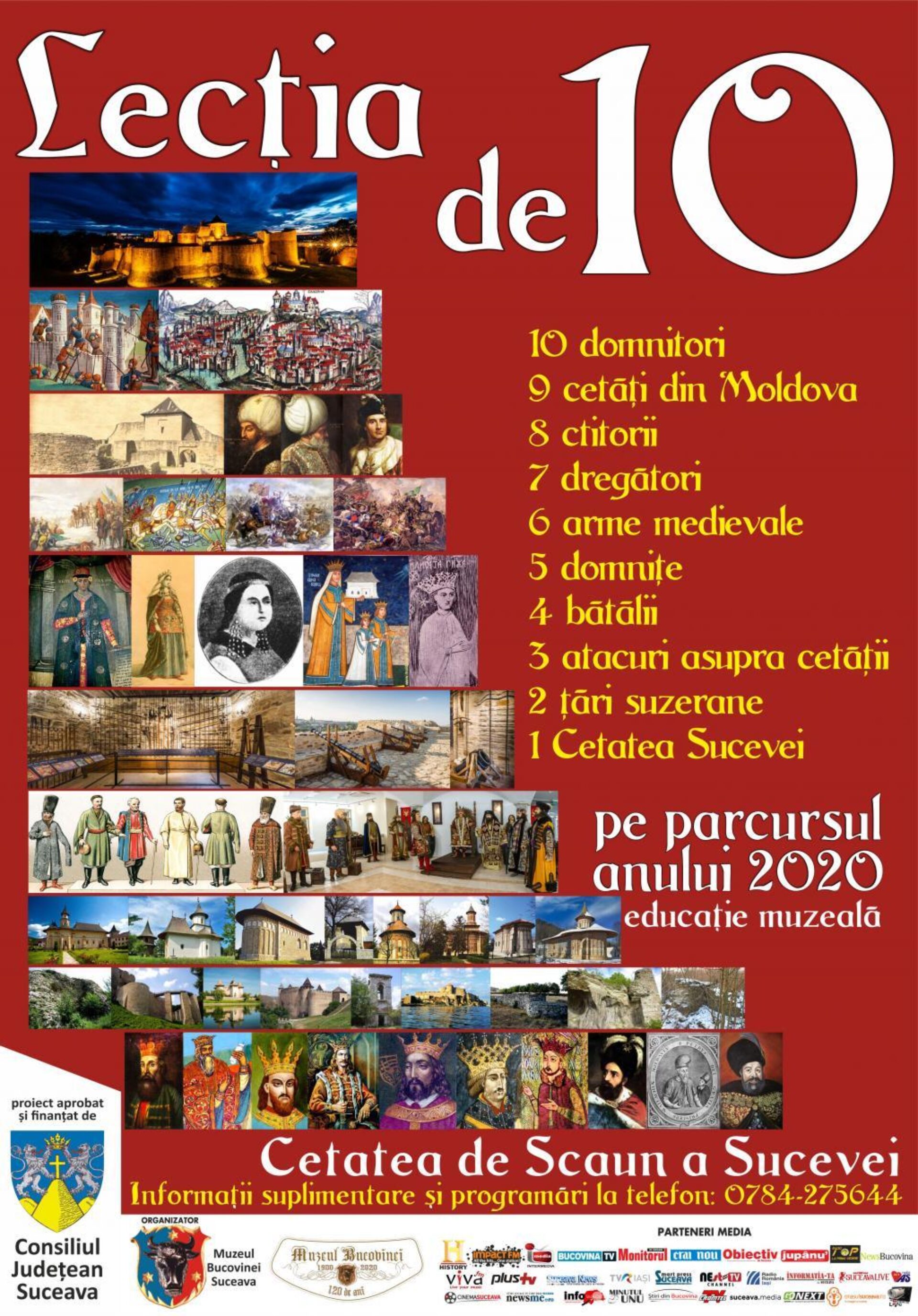 Pentru informații suplimentare despre aceste activități, dar și pentru înscrieri puteți suna la numărul de telefon 0784 275 644 (Casa Custodelui – Cetatea de Scaun a Sucevei).