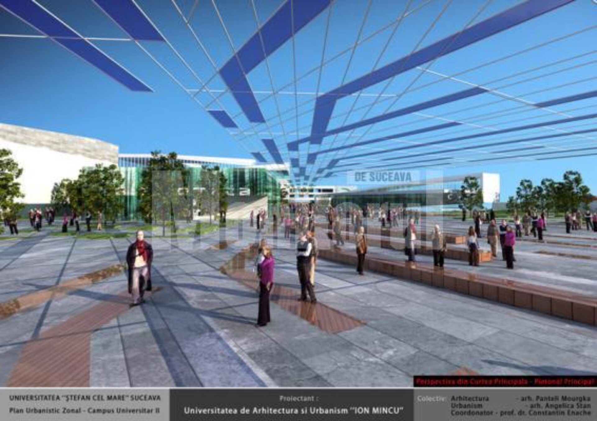 Potrivit proiectului, viitorul campus universitar sucevean poate fi numit, pe drept cuvânt, un centru academic, cultural, sportiv și recreațional. Proiectanții, arhitecții Panteli Mourgka și Angelica Stan, coordonați de profesorul universitar Constantin Enache, au încercat să facă din viitorul campus o marcă a orașului, iar coordonatorul lucrării a spus că „grija a fost aceea de a nu face ceva agresiv, care să răstoarne coerența orașului”.