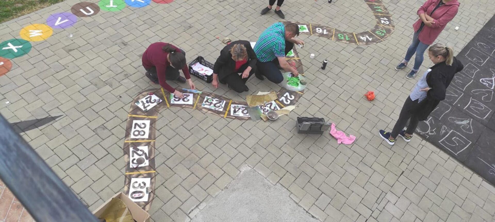 Echipa proiectului „Școală. Joacă, Educație” a pictat 3 desene: un șarpe de 15 metri cu cifrele de la 0 la 31; o omidă uriașă cu alfabetul și o floare zâmbitoare având lunile anului drept petale și frunzele zilele săptămânii. Directorul Școlii Gimnaziale Voitinel, Cureș Doru, a susținut realizarea acestui proiect și i-a felicitat pe protagoniștii acțiunii.