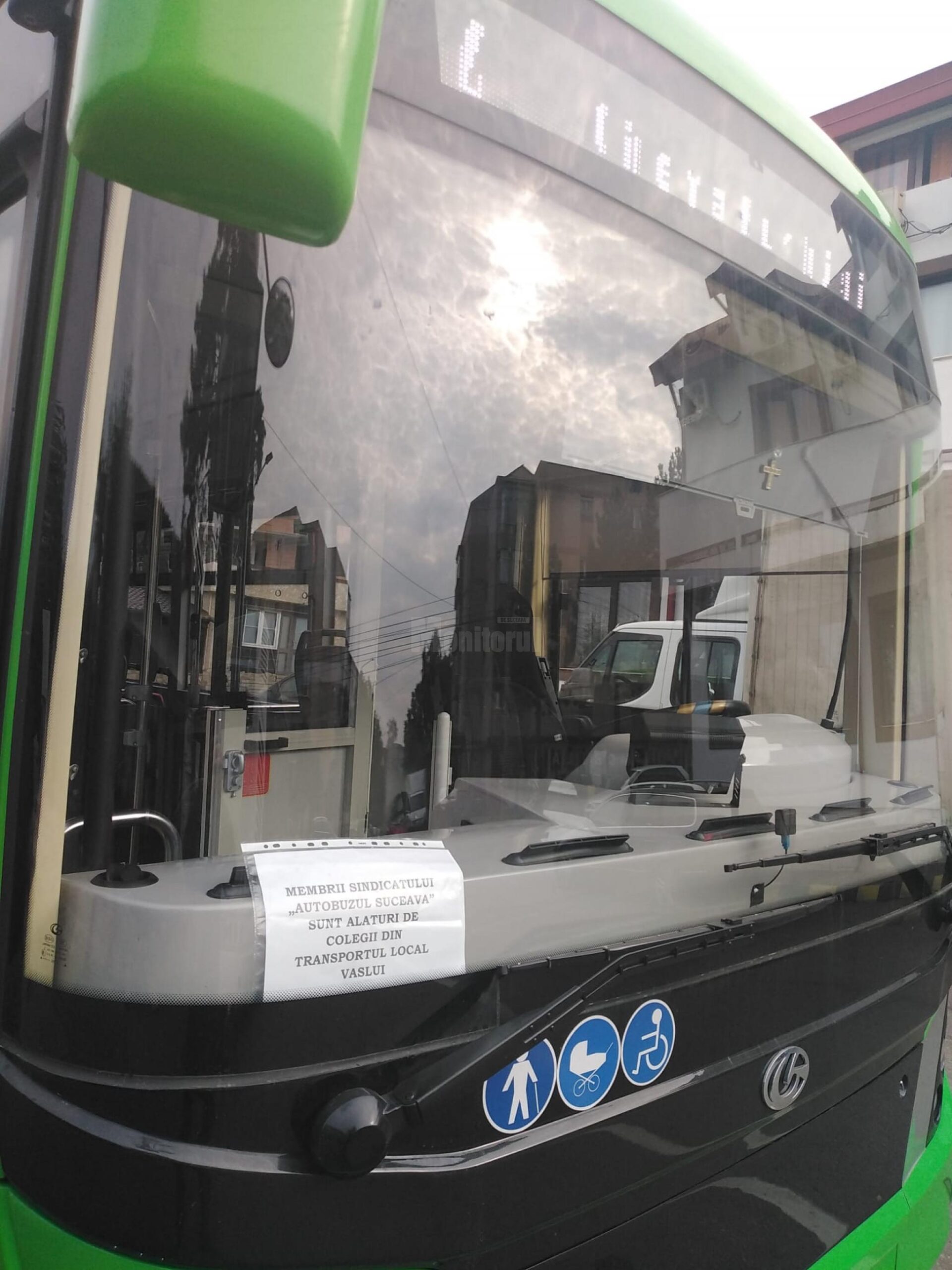 Astfel, între orele 11.00 și 13.00, autobuzele TPL din Suceava circulă cu luminile aprinse și cu o notificare de protest afișată pe bordul mașinilor, prin care se anunță faptul că “Membrii Sindicatului «Autobuzul» Suceava sunt alături de colegii din transportul local Vaslui”.