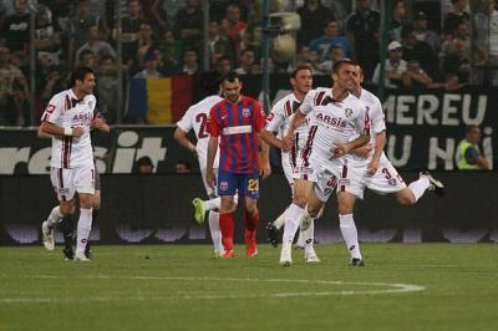 Formația Rapid București a câștigat, vineri, în deplasare, cu scorul de 2-1 (0-0), în fața echipei Steaua, într-o partidă contând pentru etapa a XXXI-a, în urma dublei reușite de Juliano Spadacio. Golurile partidei au fost marcate de Kapetanos ’52, pentru Steaua, respectiv Spadacio ’47, ’68 pentru Rapid .