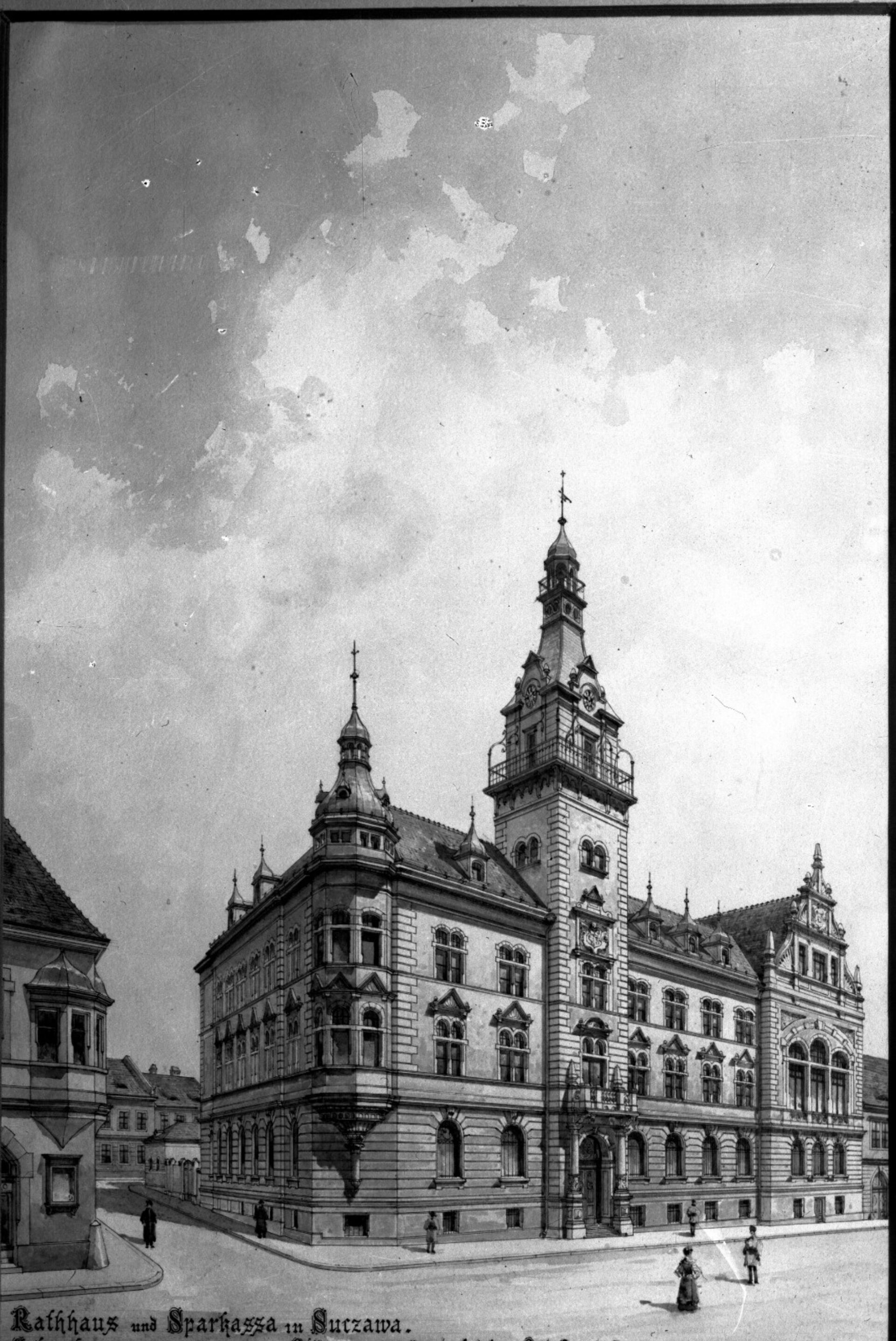 Pe baza fotografiilor de epocă și a planurilor clădirii, puse la dispoziție de Muzeul Național al Bucovinei, fațada a fost refăcută așa cum era cea originală – cu Sfântul Gheorghe pe turnul principal, care are o înălțime de 52 de metri, și cu stema Bucovinei pe turnul din dreapta, de asemenea acoperită de comuniști și redescoperită după 1990. Totodată, s-au refăcut decorurile geometrice de pe fațadă, care puneau în evidență volumele arhitecturale, precum și decorurile florale aflate de o parte și de alta a ferestrelor sălii de ședințe (Sala „Ștefan cel Mare”).