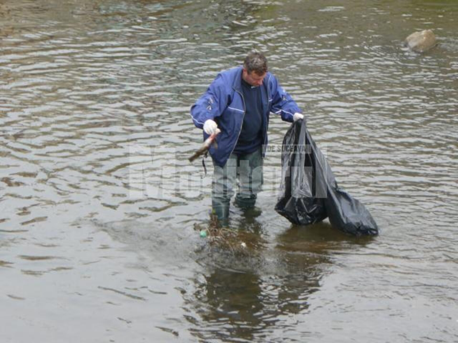 Echipați cu cizme și costume impermeabile, o parte a voluntarilor au intrat în mijlocul râului Bistrița, adunând în saci toată mizeria venită din amonte. Găleți sparte, haine, în general gunoaie aruncate de oameni, au fost îndepărtate, lăsând apa să „respire”.