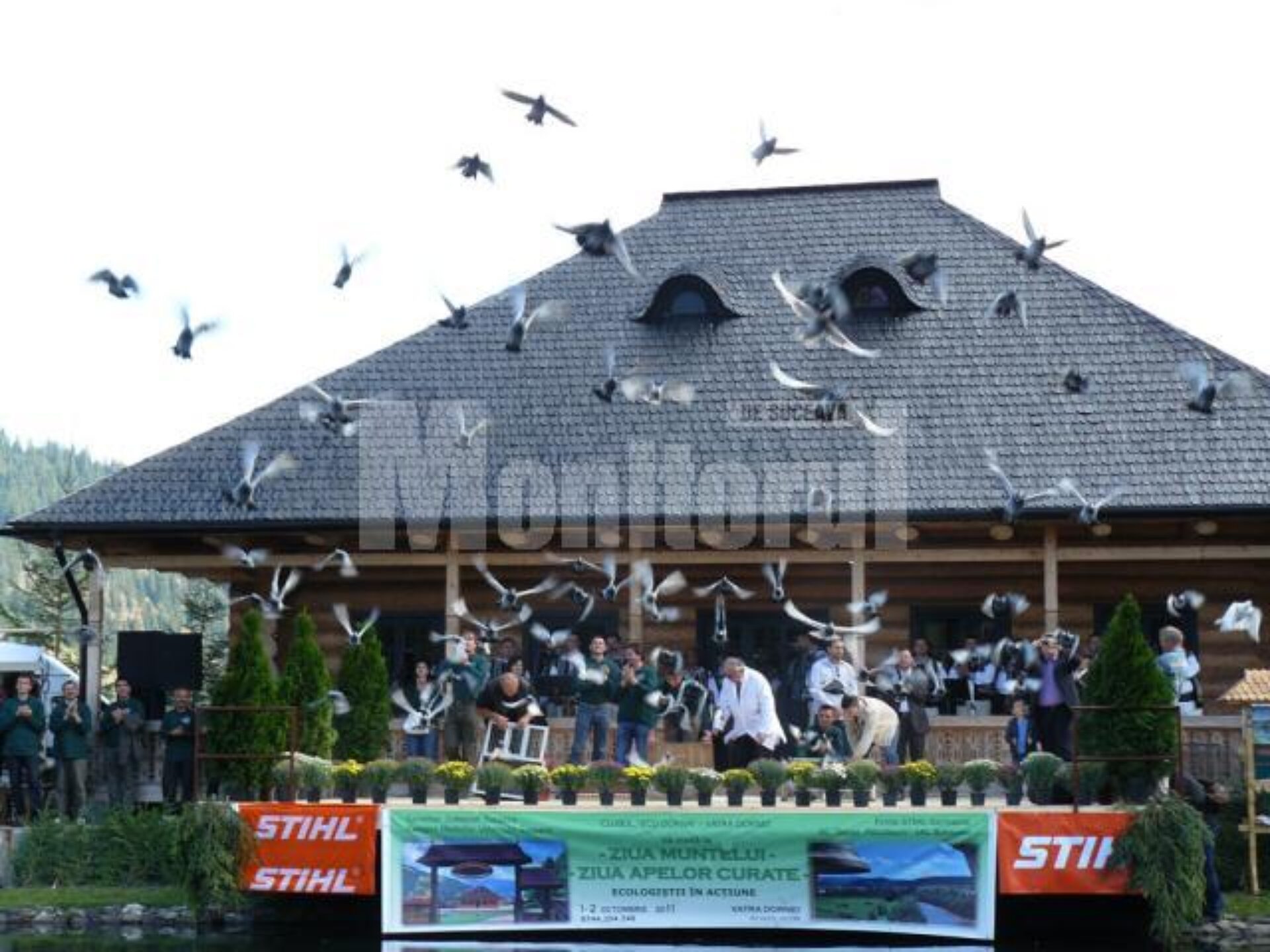 Sub privirile unui public entuziast, 100 de porumbei din familia unui campion, porumbei care îi aparțin doctorului Mircea Bilius, cel mai cunoscut columbofil din județ, au plecat în cursă, dinspre Vatra Dornei spre Suceava, odată cu un avion ușor, pilotat de omul de afaceri Daniel Mitric, și un autoturism de teren.