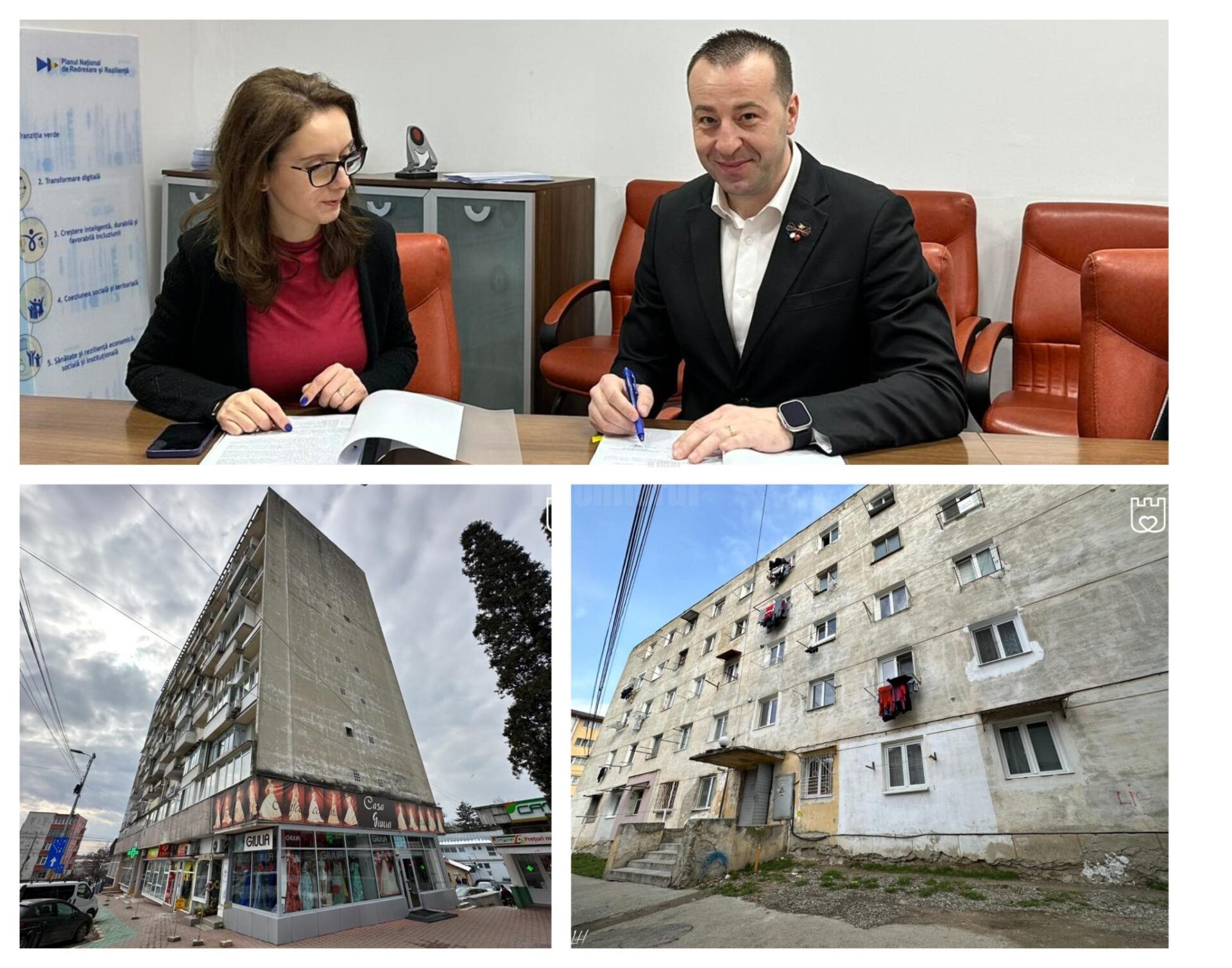 Contractele de finanțare pentru renovarea energetică moderată a blocului „Lamă”, din Areni, situat chiar vizavi de sediul Primăriei Suceava, precum și a blocului ”Castor”, din zona Gării Burdujeni, au fost semnate vineri de către viceprimarul Lucian Harșovschi, la sediul Direcției Generale de Implementare a Planului Național de Redresare și Reziliență, în Capitală.