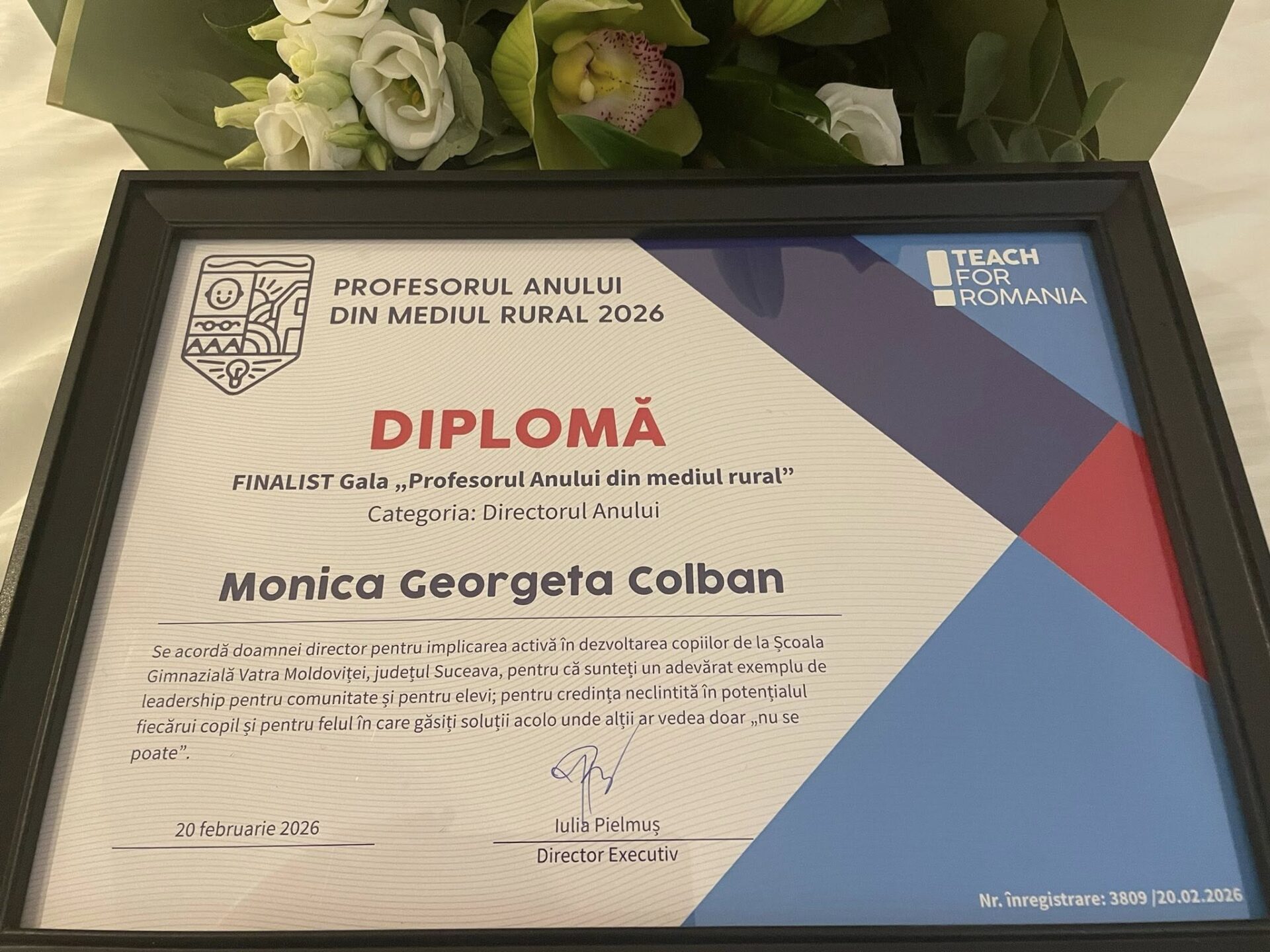 „Din 421 de nominalizări la nivel național, doamna director s-a numărat printre cei 3 finaliști – o performanță care vorbește de la sine despre profesionalismul, devotamentul și dragostea pe care le oferă, zi de zi, școlii și comunității noastre.