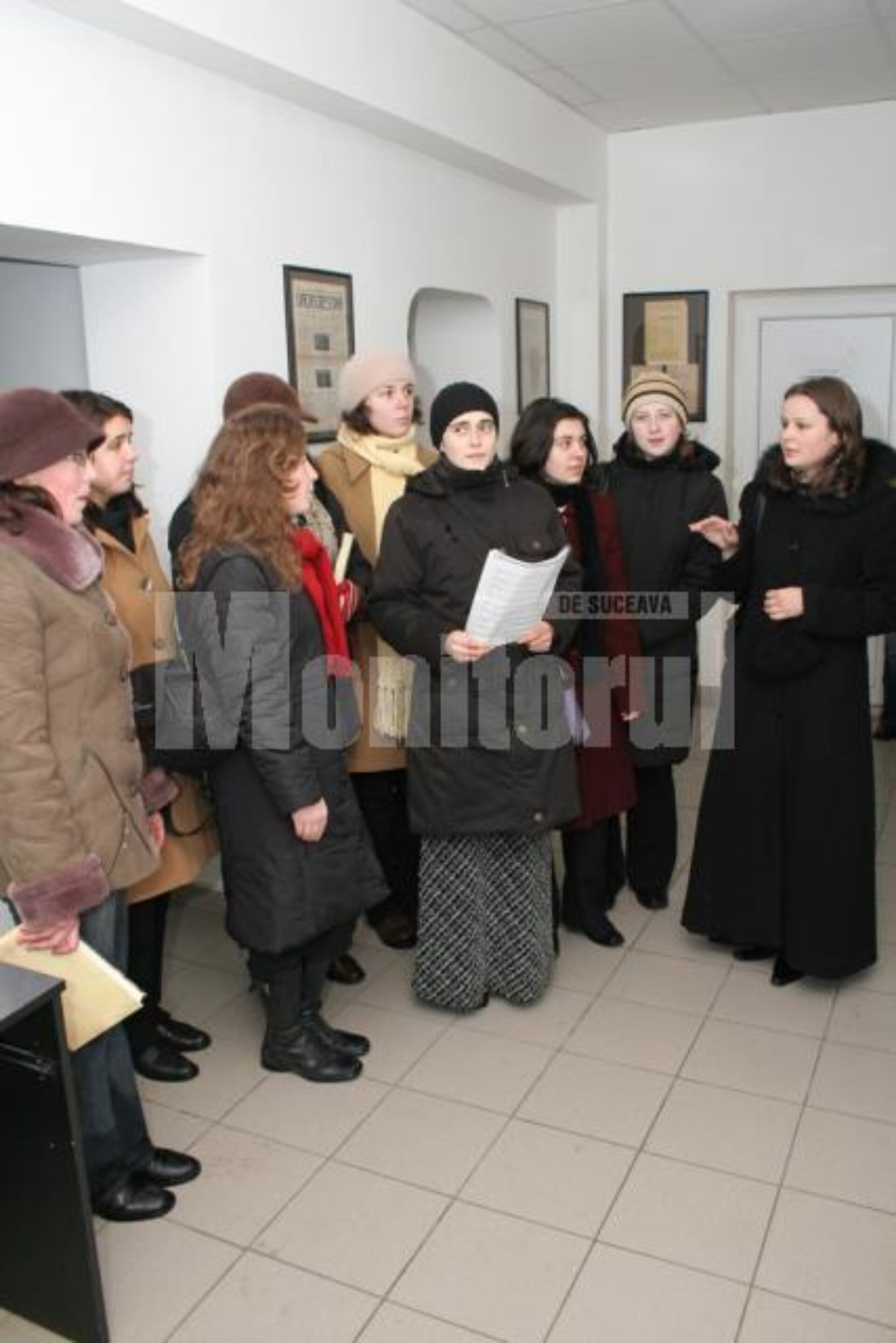Redacția Cotidianului „Monitorul de Suceava” a primit ieri colindători. Un grup de nouă studente, membre ale Asociației Studenților Creștini Ortodocși Români, a interpretat mai multe colinde vechi, tradiționale românești.