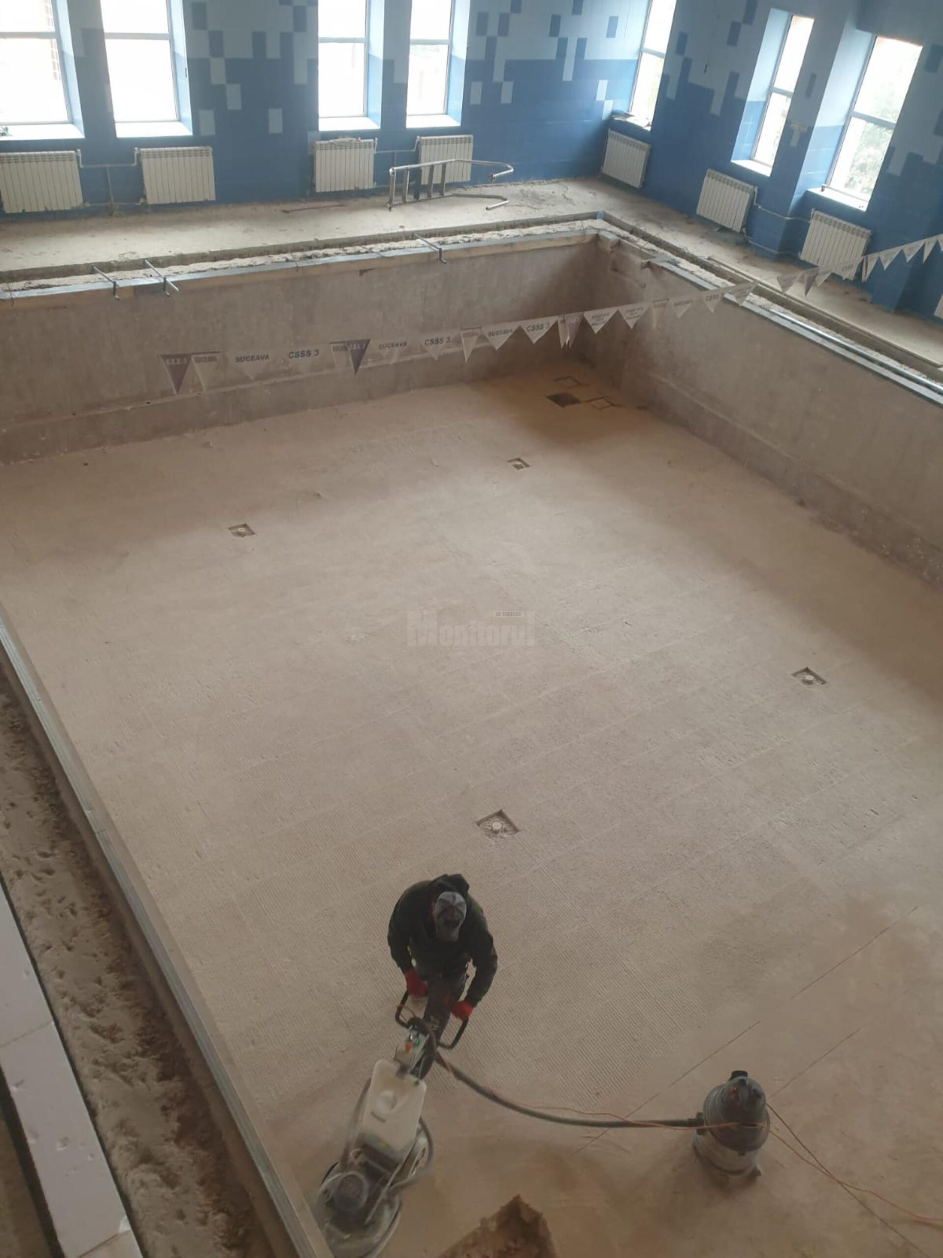 “Se lucrează la consolidarea structurii de rezistență a bazinului, la schimbarea gresiei, s-a înlocuit instalația cu schimbătoare de căldură pentru încălzirea apei din bazinul de înot.