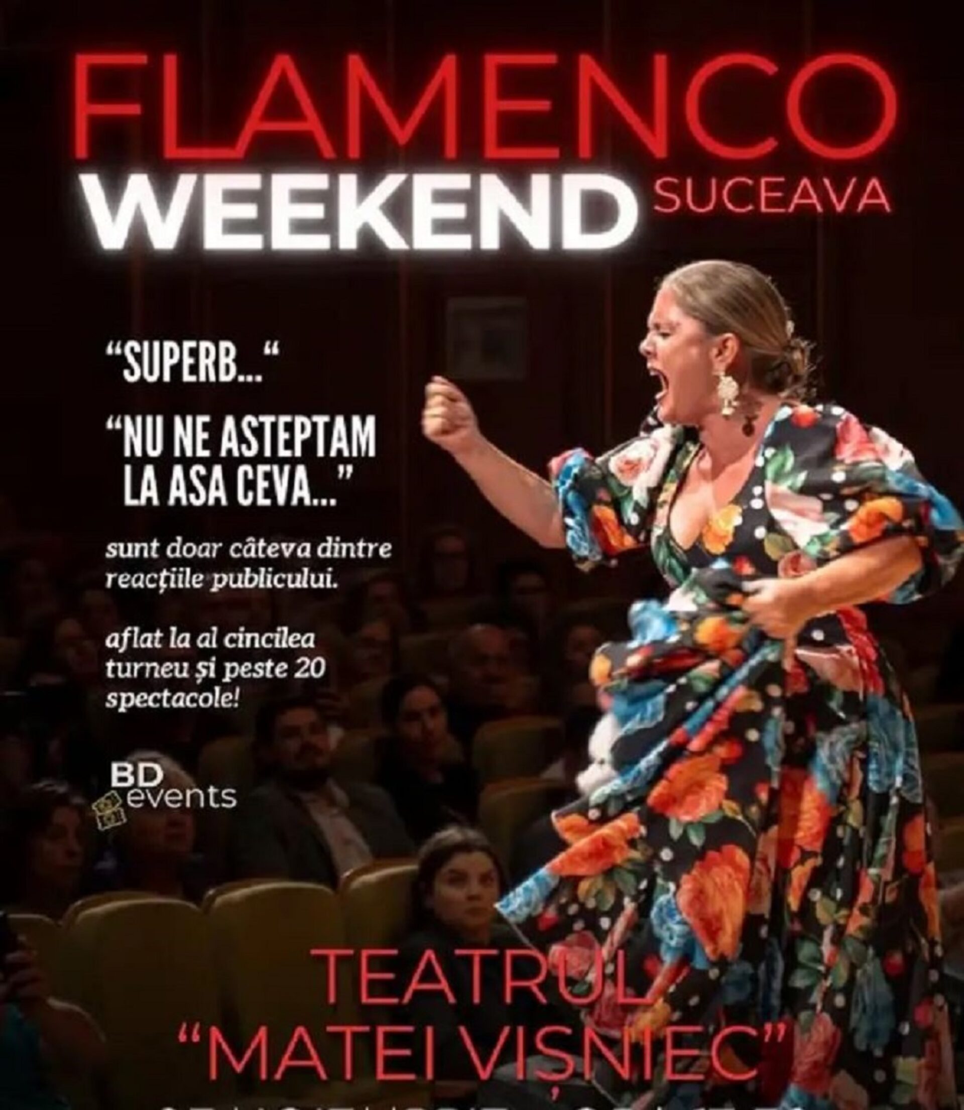 Datorită succesului de vânzări al concertului de flamenco de duminică, 23 noiembrie, susținut de Maria Rubi & Band, pe scena Teatrului Municipal „Matei Vișniec” Suceava, organizatorii au mai programat o reprezentație.