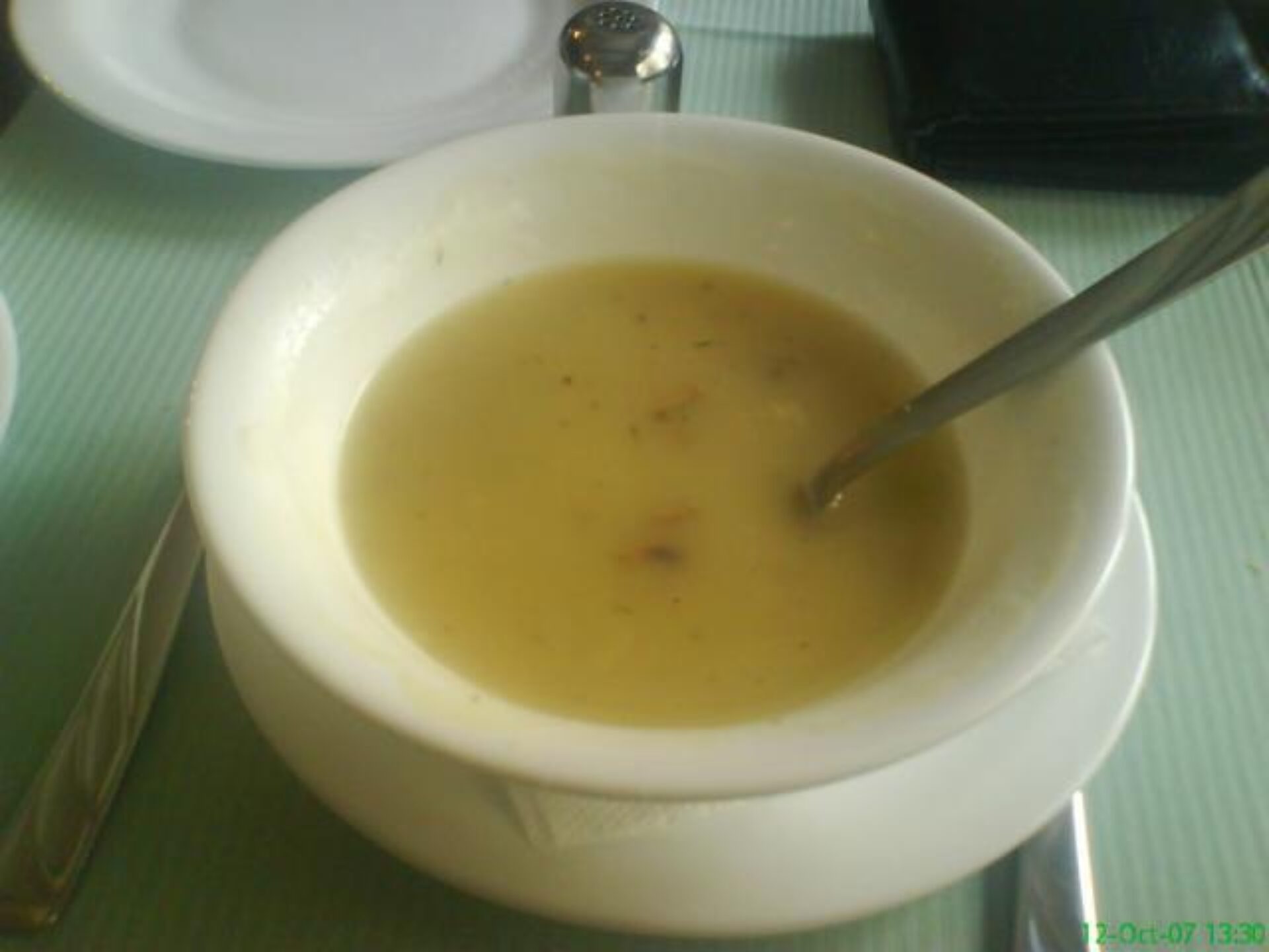 După vreo 10-15 minute de clocotit (cât îi ia cartofului să se moaie), se amestecă apa, pentru o supă de post sau smântâna (pentru mâncare de frupt) cu lingura de griș și se adaugă la supă. Se amestecă bine și se mai lasă la fiert încă 5 minute.