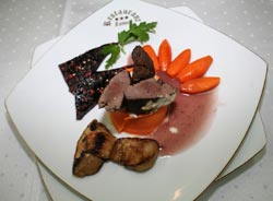 Fileul de cerb se fasonează, se prăjește la foc iute 5-7 minute, țelina se taie cubulețe, se înăbușă pentru obținerea piureului.