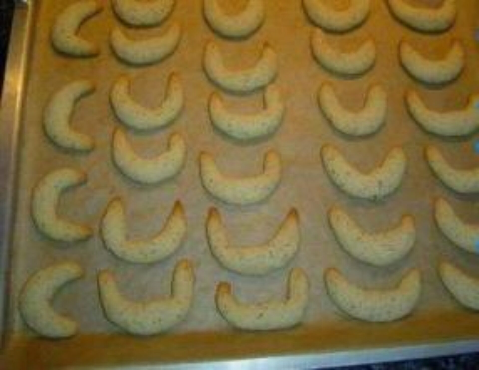Se amestecă într-un castron margarina, zahărul, coaja de lămâie, miezul de nucă, făină, bicarbonatul stins cu o lingură zeamă lămâie, se frământă bine. Se întinde o foaie de 3-4 cm grosime și se taie în pătrățele de 6 cm. În mijlocul pătrățelului se pune o bucată de rahat, se rulează. Se așează cornulețele pe o tavă, cu hârtie de copt. Tava se dă la cuptor, la foc potrivit. Când se scot se tăvălesc prin zahăr pudră.