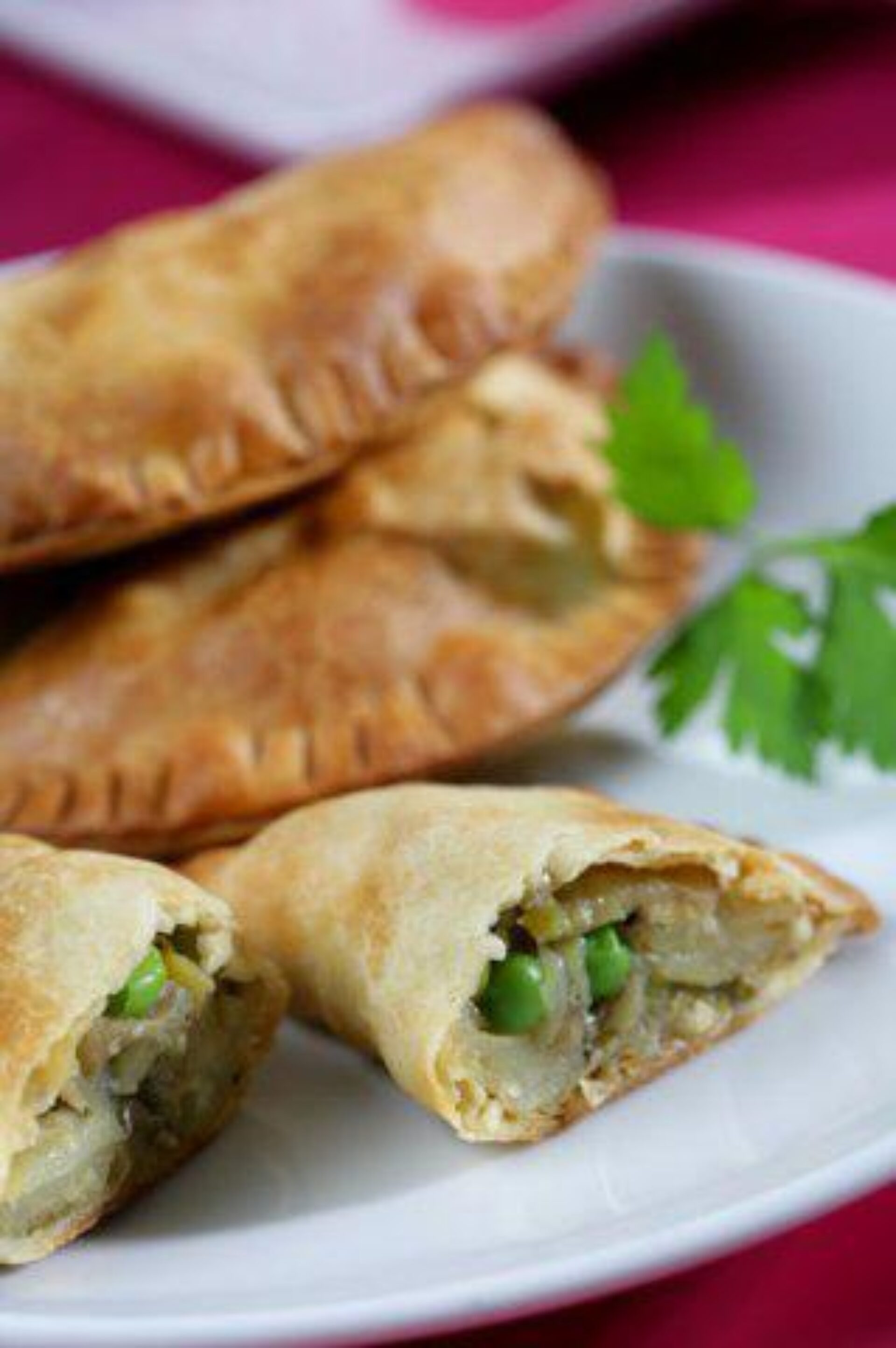 În centru se pune umplutura și se împachetează, adunând colțurile aluatului în mijloc și presând ușor pentru lipirea acestora.