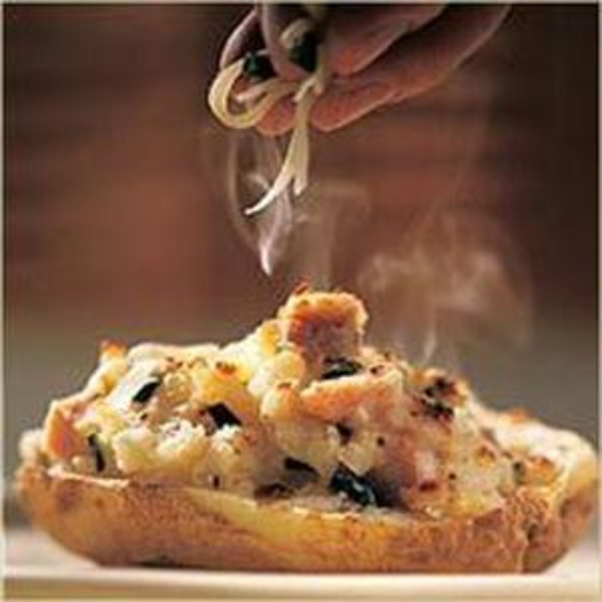 Se spală bine cartofii în apă rece și se pun la fiert în coajă, cu o linguriță de sare. Când sunt pe jumătate fierți, se scot, se lasă puțin să se răcească, după care se curăță de coajă și se golesc de miez. Verdețurile tocate mărunt se călesc în ulei după care se amestecă cu orezul fiert, se potrivește de sare și piper și se mai lasă pe foc 3-4 minute. După ce ați umplut cartofii cu acest amestec, puneți-i într-o tavă cu puțin ulei și coaceți-i la cuptor până se rumenesc deasupra.
