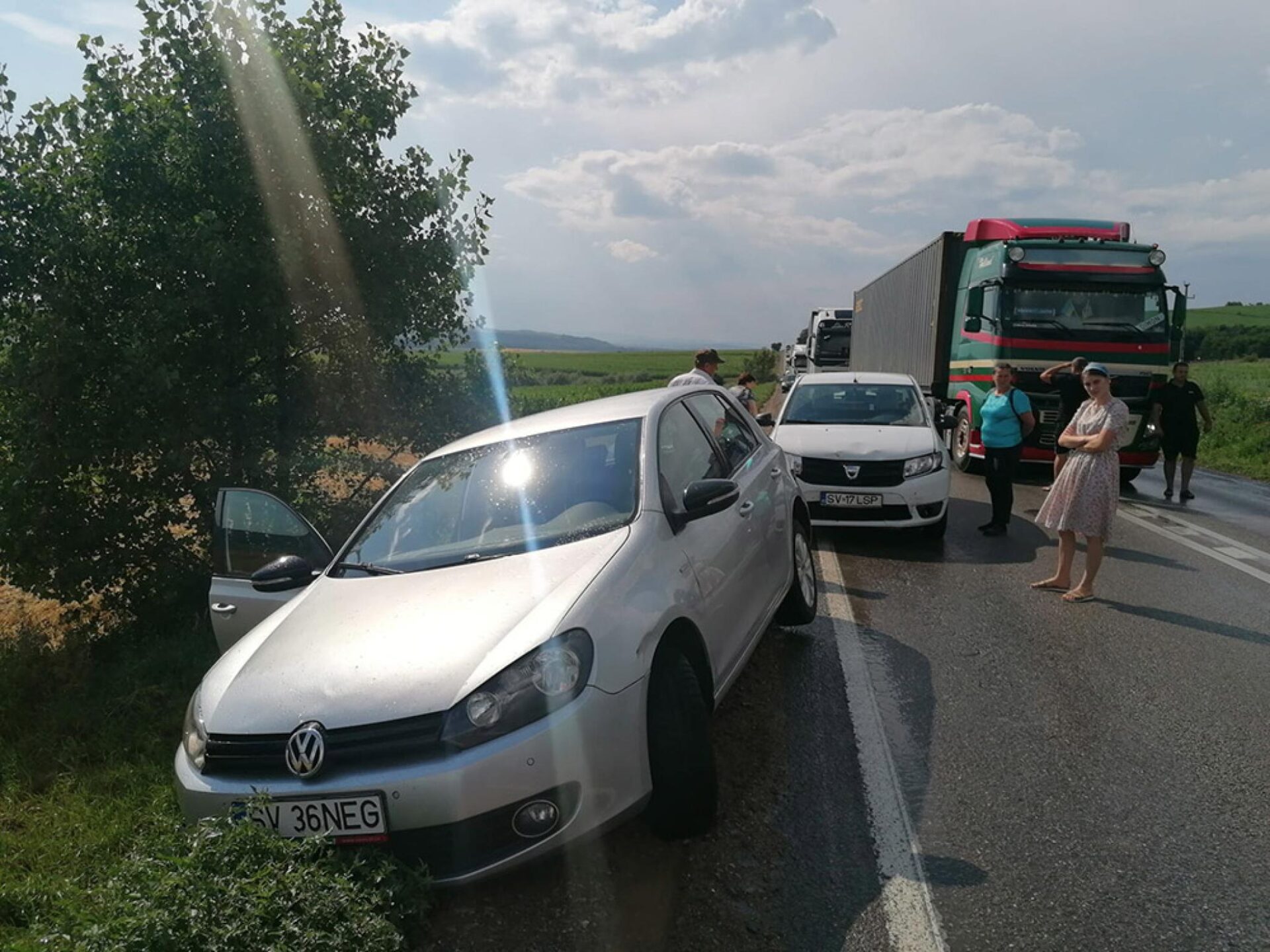 În multitudinea de accidente grave care au avut loc joia trecută pe raza județului a trecut mai puțin observat un accident de pe E 85, între Dărmănești și Pătrăuți. Un autotren înmatriculat în Ucraina a intrat violent într-un autoturism Dacia Logan din față, în care se aflau patru suceveni. Dacia a fost proiectată la rândul ei într-un VW care era condus de o tânără în vârstă de 19 ani, din Cajvana.