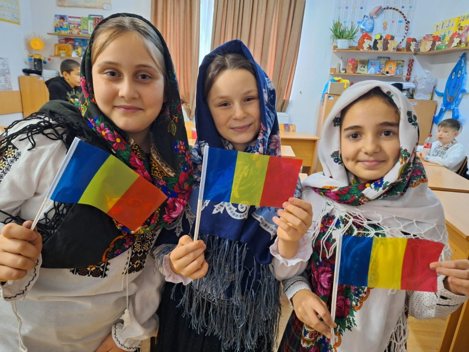 Copiii au venit îmbrăcați în costume populare autentice, purtând cu emoție ia românească și motivele tradiționale, simboluri vii ale identității noastre naționale. Atmosfera a fost una de sărbătoare, dominată de culorile tricolorului care au împodobit clasele și curtea școlii.