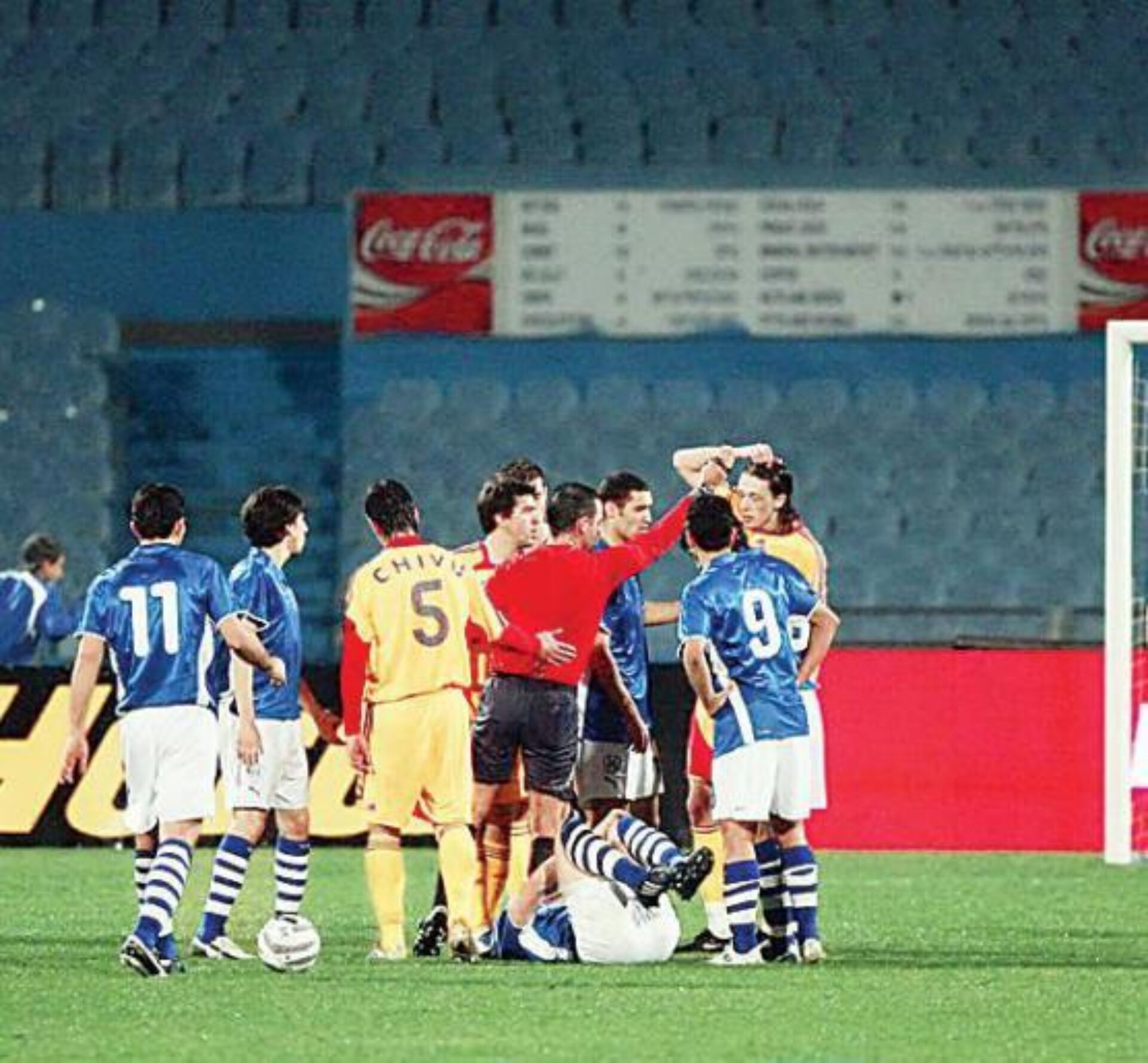 România: 1. Lobonț – 2. Contra (18. Ogăraru ’87), 4. Tamaș (14. Moți ’90+1), 15. Goian, 22. Șt. Radu (19. Neșu ’90+1) – 16. Nicoliță (7. Fl. Petre ’46 / 17. G.Bucur ’83), 8. Ov. Petre, 11. Cociș, 5. Chivu – 10. Mutu, 9. Marica (20. Dică ’46).