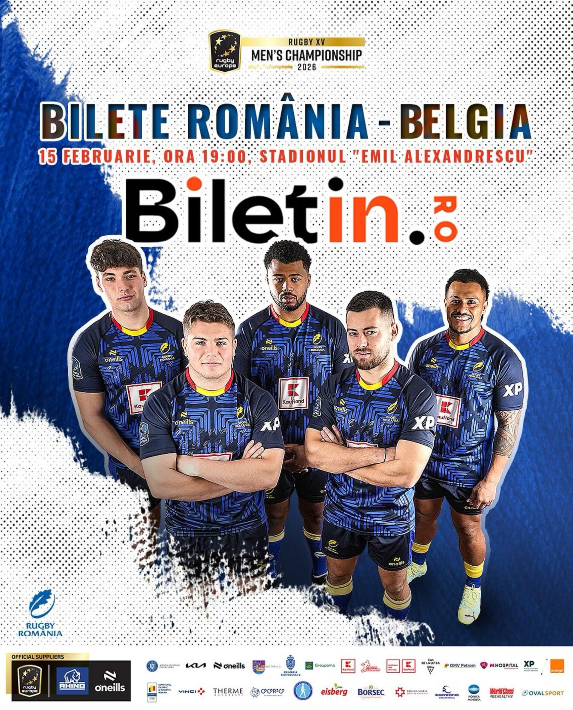 Naționala de rugby a României joacă singurul meci de acasă din cadrul Campionatului European de Rugby duminică seară, la Iași, pe stadionul Emil Alexandrescu, cu Belgia.