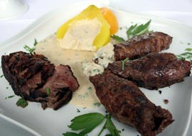 Brânza se mărunțește și se dă în clocot cu supa de legume și smântână, amestecând continuu. Se înglobează smântâna grasă, se condimentează apoi se adaugă la feliile de rosbif.