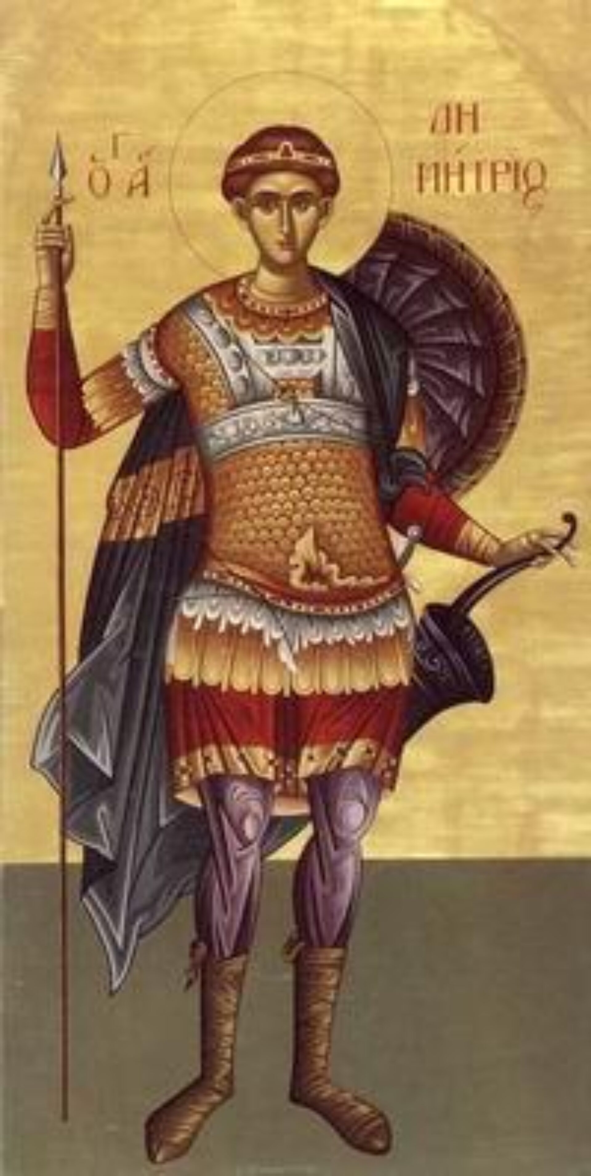 Învățătorului dreptslăvitoarei credințe celei întru Hristos, surpătorului și rușinătorului păgânătății, Izvorâtorului de mir, Marelui Mucenic Dimitrie, ostașul cel adevărat al lui Hristos, care s-a arătat Bisericii ca un soare și mare apărător credincioșilor, toți acum cântări de mulțumire și laude din suflet cu dorire aducându-i să-i cântăm: bucură-te, Izvorâtorule de mir, Mare Mucenice Dimitrie!