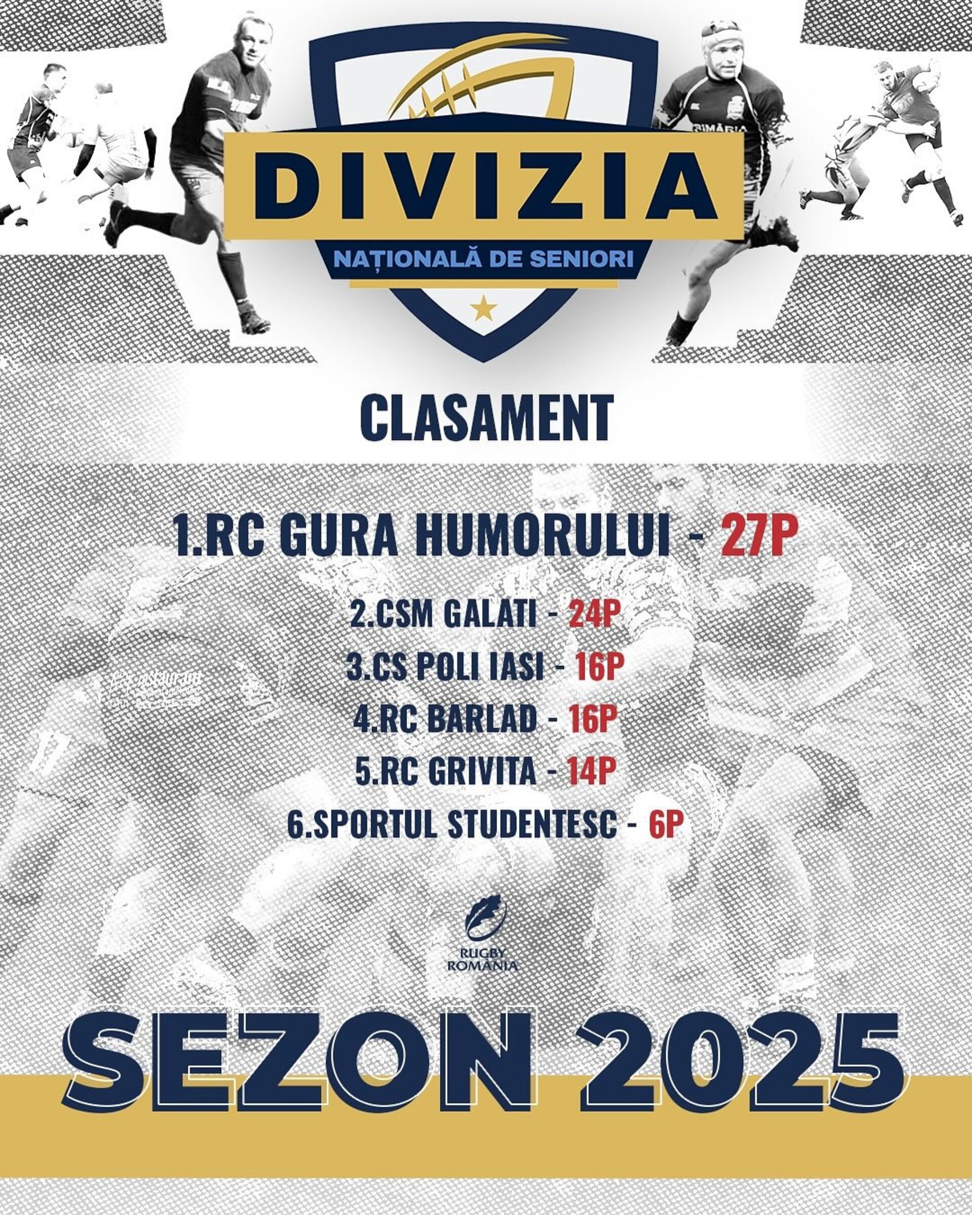 Cu încă trei etape din play-off, RC Gura Humorului este pe locul I, cu 27 de puncte, următoarea clasată fiind CSM Galați – 24 de puncte.
