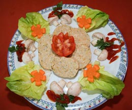Pieptul de pui se toacă prin mașina de tocat carne. Ciupercile se spală, se taie felii și se călesc în ulei împreună cu ceapa și usturoiul timp de 3 minute, după care se toacă și se amestecă cu pieptul. Se omogenizează compoziția în care se adaugă ouăle, pesmetul, pătrunjelul și castraveciorii tăiați cuburi. Compoziția obținută se rulează într-o folie de aluminiu unsă cu ulei și se dă la cuptor timp de 1 oră la 220 grade C, după care se lasă la răcit timp de 2-3 ore.