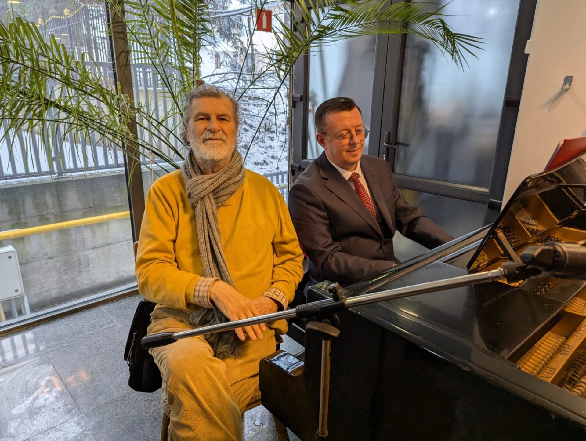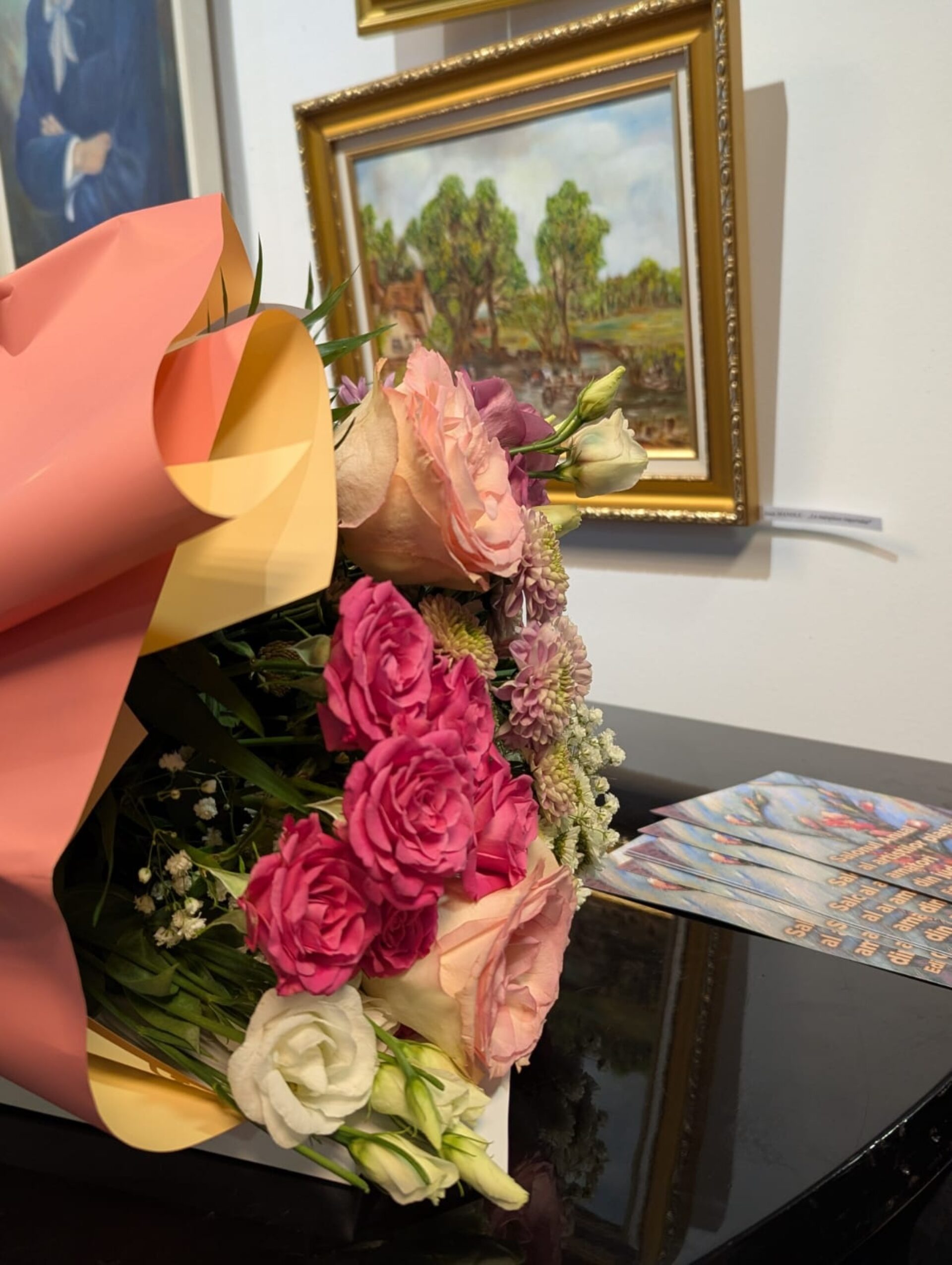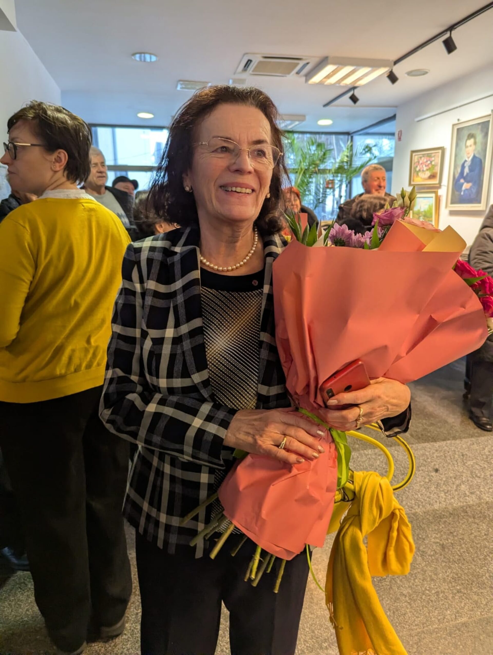 Maestrul PIM i-a oferit buchetul de flori artistei plastice Doina Catargiu, prezentă la eveniment, în aplauzele publicului, pentru că 30 ianuarie este ziua ei de naștere.