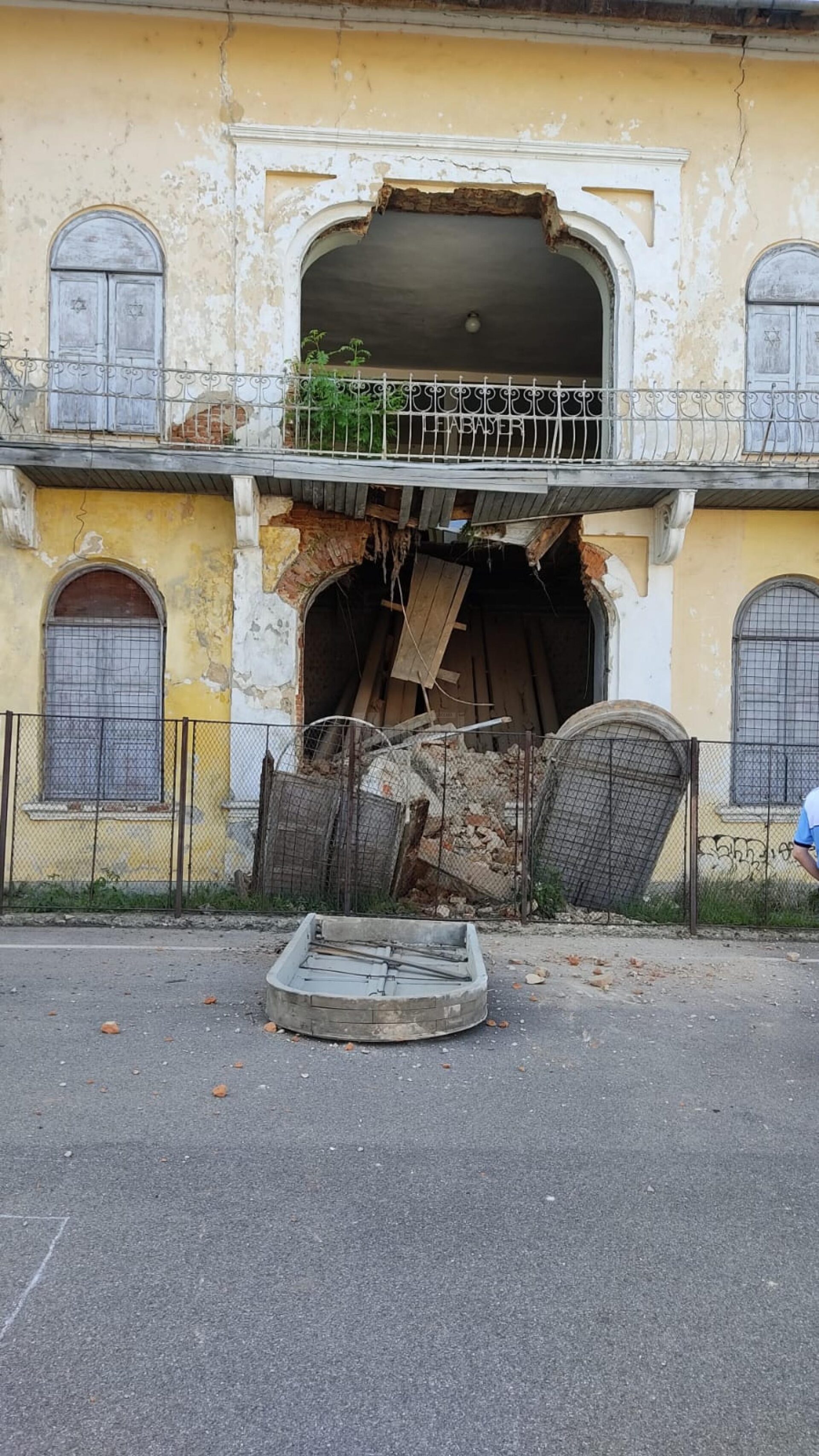 Peretele de nord al sinagogii din Fălticeni s-a prăbușit, joi dimineață. Zidul s-a prăbușit în curtea scolii din apropiere. Nu a fost nimeni rănit. Vom reveni cu amănunte.