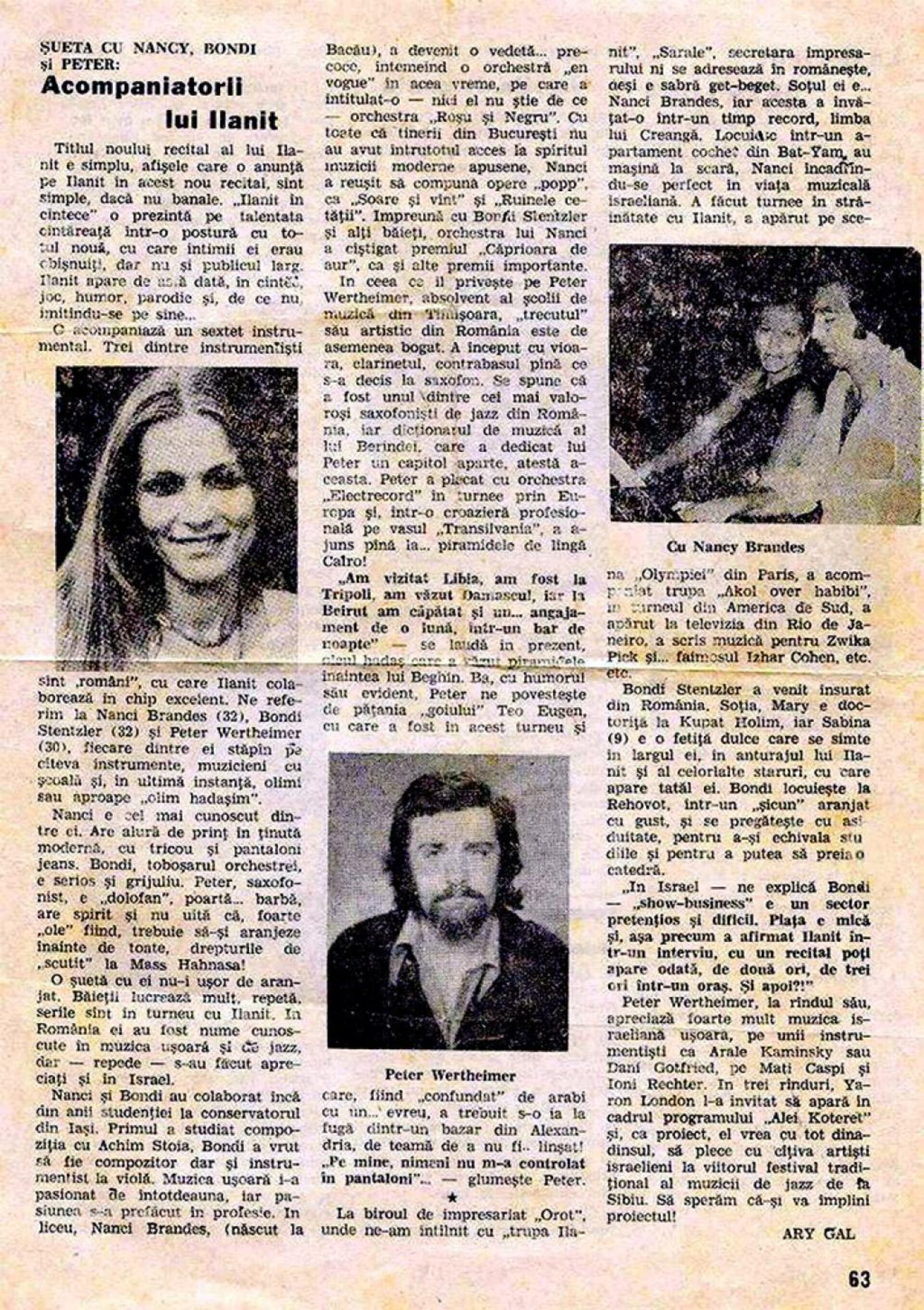 În 1975, atât Bondy Stenzler, cât și Nancy Brandes au decis să emigreze în Israel. Au avut ocazia să cânte cu muzicieni cunoscuți și, după cinci ani, Bondy a început să predea muzica la o școală, iar seara susținea concerte. După 19 ani, Bondy și Mary au decis să divorțeze, la sugestia fiicei lor, după cum a povestit muzicianul. Ulterior, Mary a făcut o comoție cerebrală și a murit.