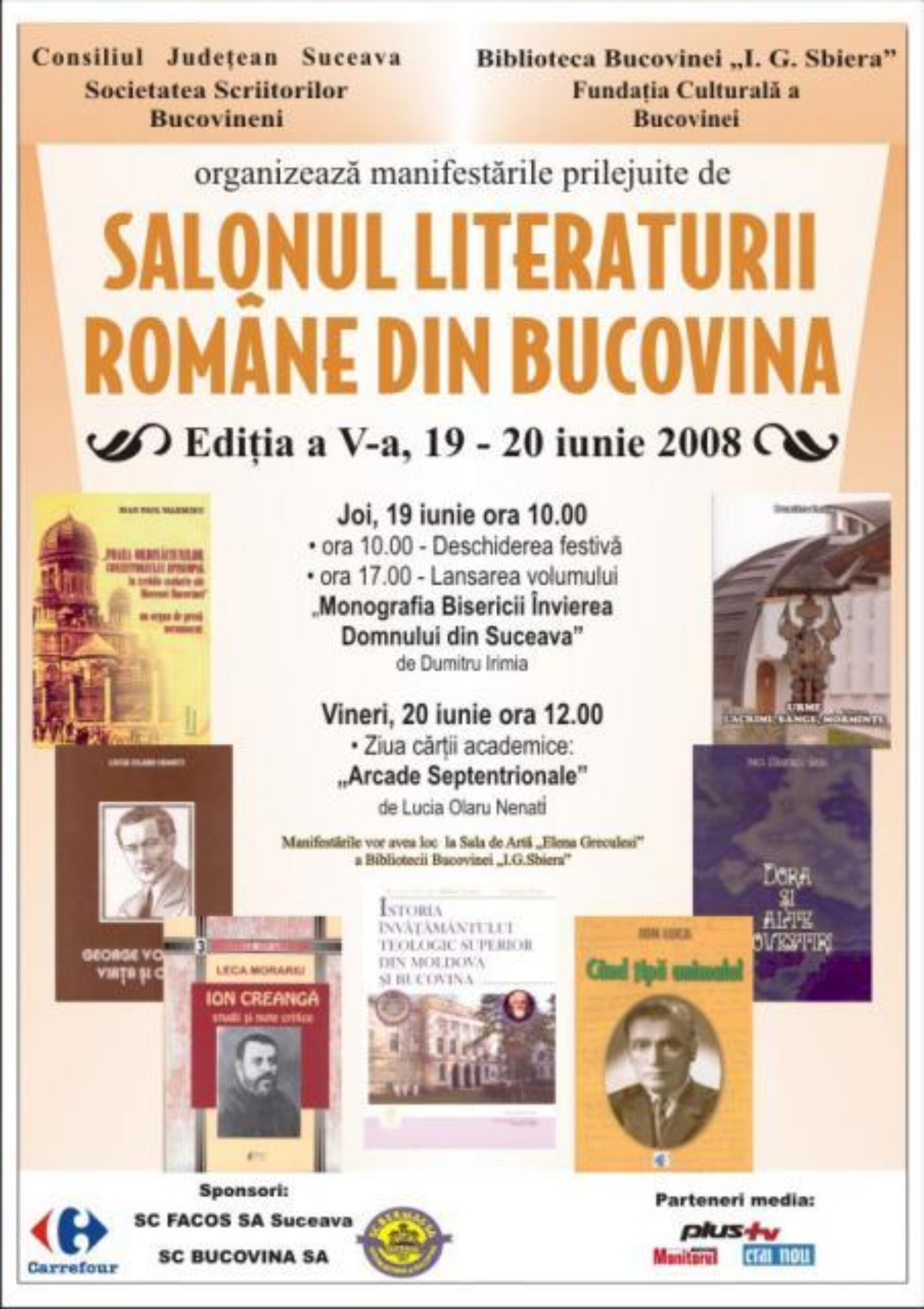 Biblioteca Bucovinei „I.G. Sbiera” Suceava, Societatea Scriitorilor Bucovineni și Fundația Culturală a Bucovinei organizează, în zilele de 19-20 iunie a.c., cea de-a V-a ediție a Salonului Literaturii Române din Bucovina.