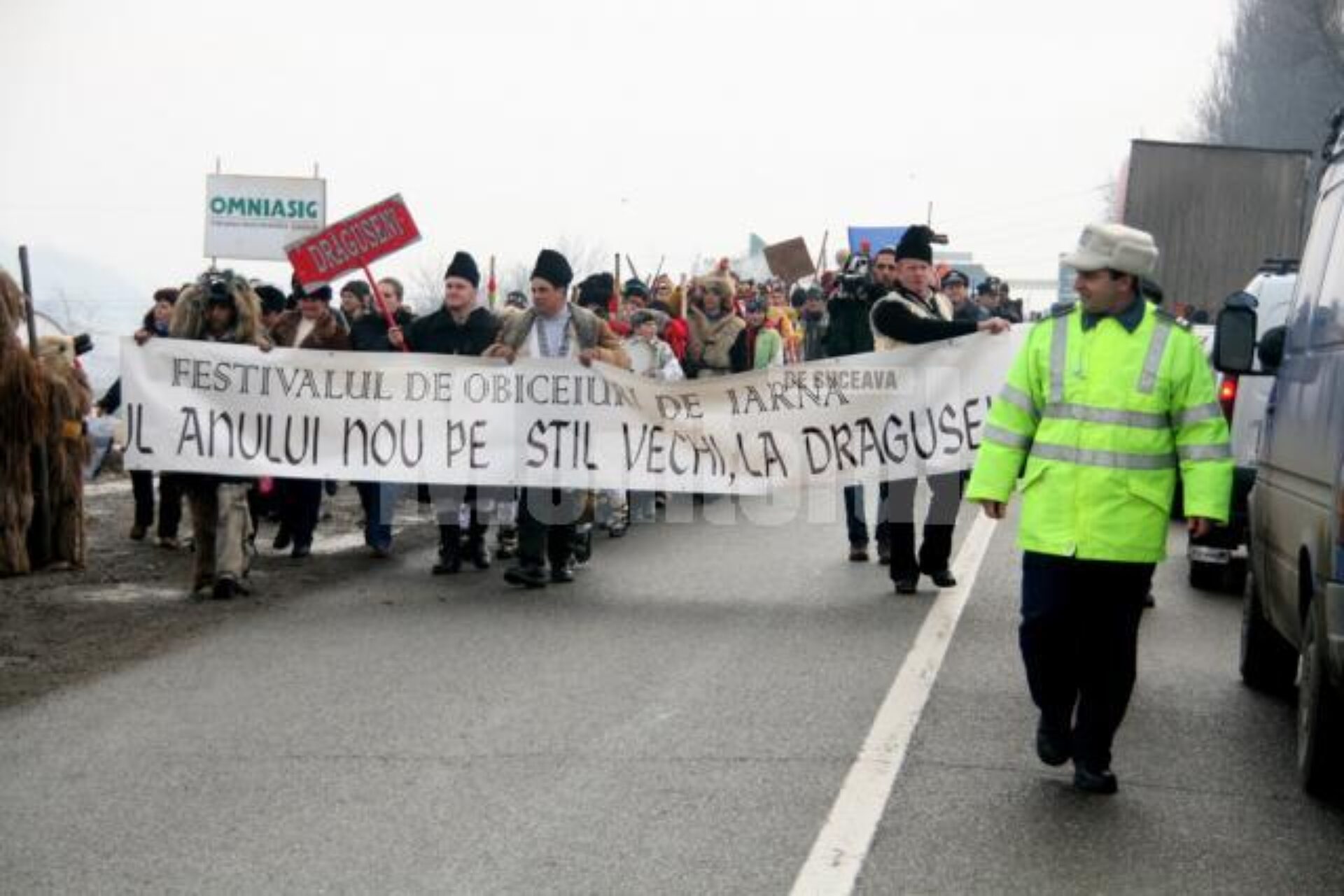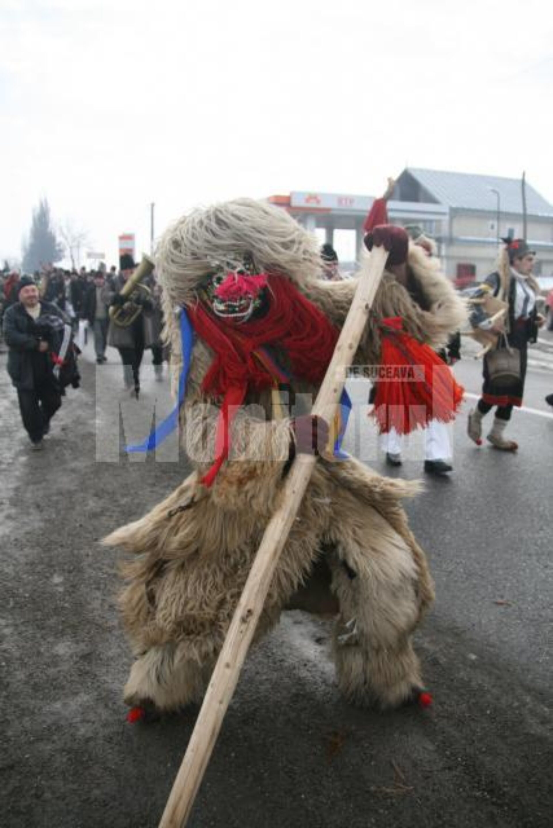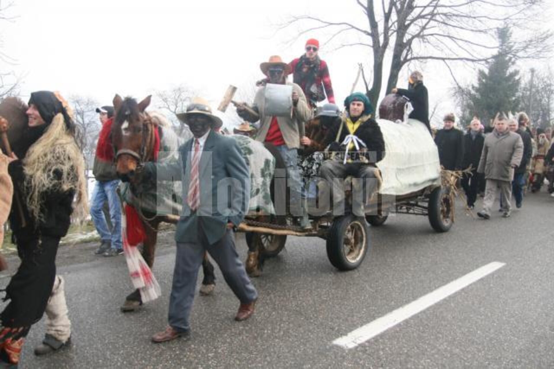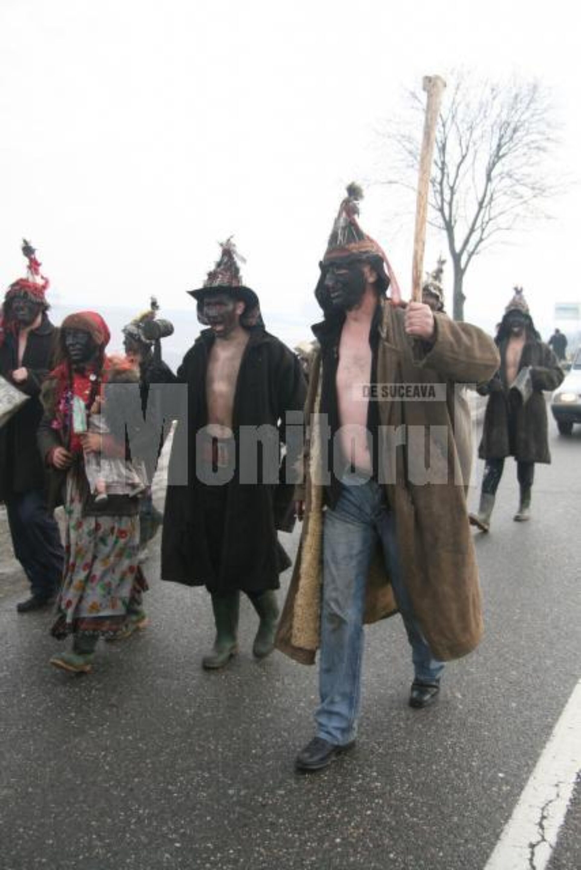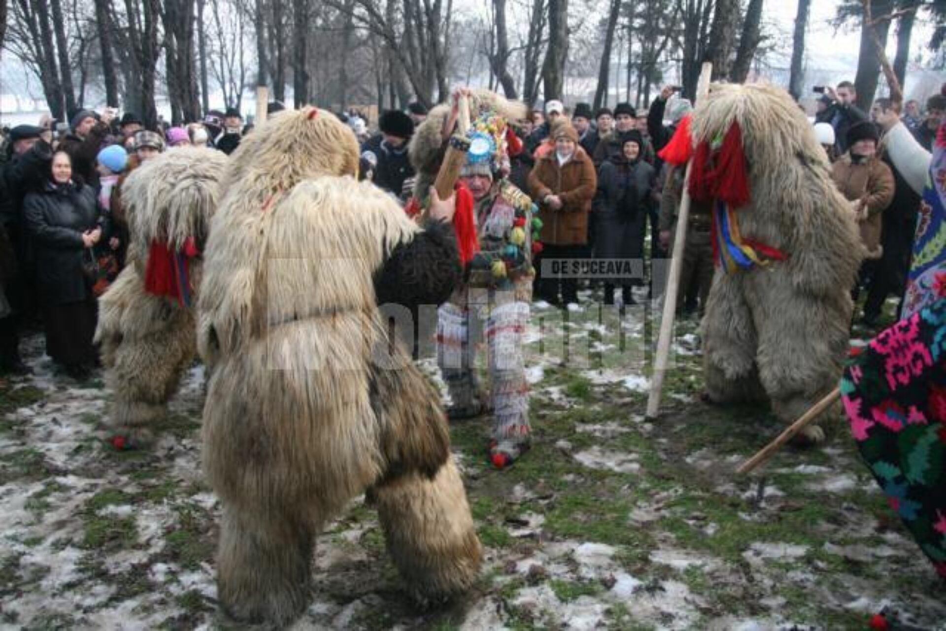 Peste 300 de mascați și dansatori de toate vârstele din comunele sucevene Boroaia, Bogdănești, Râșca, Drăgușeni, Dolheștii Mici și Forăști, în care trăiesc ortodocși de stil vechi, împreună cu alți circa 80 din localitățile ieșene Miroslăvești și Pașcani au făcut deliciul șoferilor care s-au aflat ieri la amiază pe traseu și care au răspuns cu claxoane și fluturări de mâini la urăturile tradiționale.
