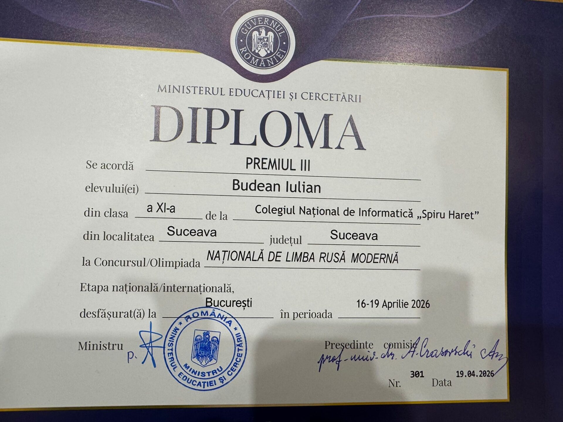În urma punctajelor obținute, elevii suceveni au obținut șase distincții la etapa națională a Olimpiadei de Limba rusă modernă, din perioada 16-19 aprilie, de la București.