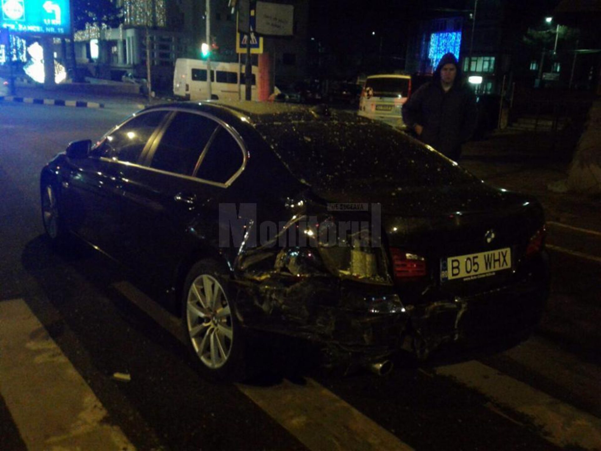 Accidentul s-a produs după ora 18.00 și în el au fost implicate două autoturisme BMW, din care unul înmatriculat în Marea Britanie, două autoturisme Audi, din care unul tot cu volanul pe partea dreaptă, un Opel și un VW, ultimele două fiind mai puțin afectate în urma coliziunii în lanț. La fața locului au ajuns de urgență polițiștii rutieri și criminaliștii, care au luat mai multe probe și au discutat cu martorii prezenți.