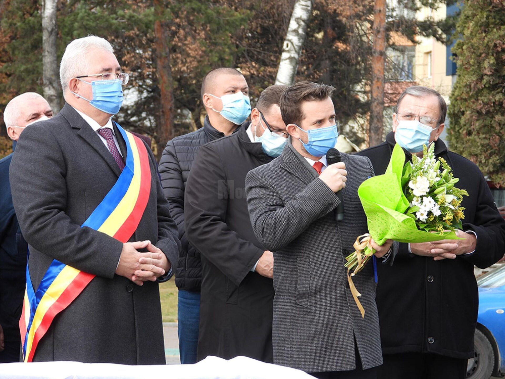 Evenimentul s-a petrecut sâmbătă, în fața sediului Primăriei Suceava, lângă bustul fostului primar Franz cavaler de Loges.