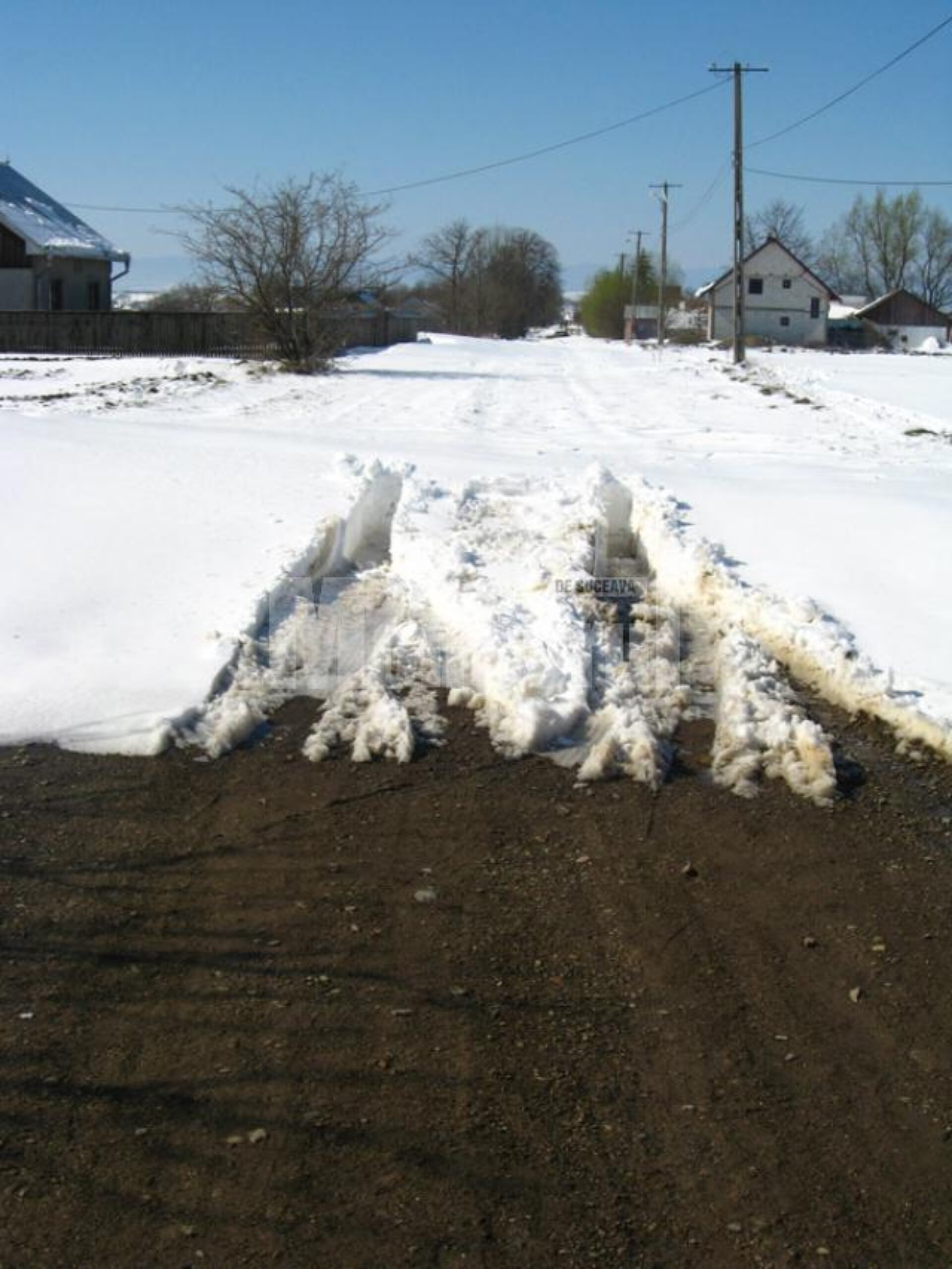 Ieri, în jurul orei 11.00, reporterii Monitorul de Suceava au găsit în Vicșani o situație hilară. În mijloc de lună aprilie, la o temperatură de 3-4 grade Celsius, oamenii se deplasau cu greutate, pe cărări, drumul fiind înfundat de zăpadă. Nici un utilaj de deszăpezire nu trecuse încă prin zonă.