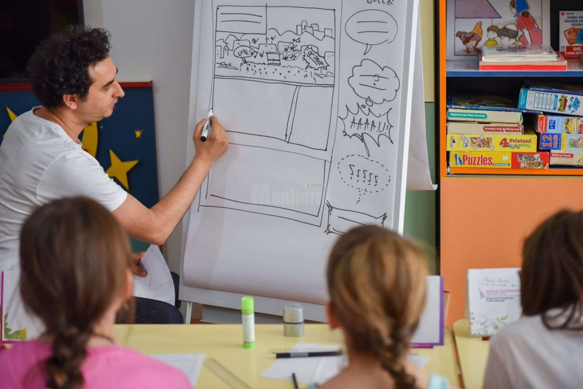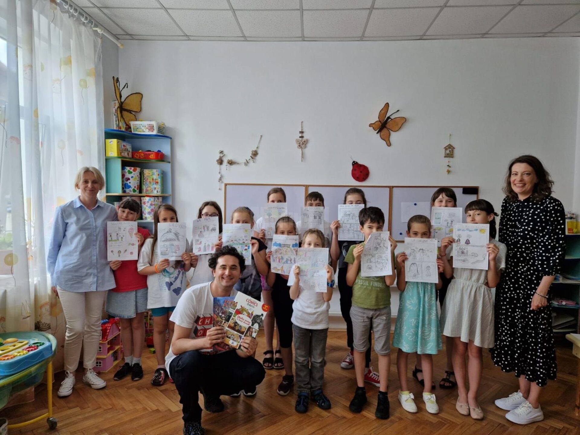 Am aflat de la reprezentanții Alianței Franceze din Suceava că participanții din această grupă au mers la un atelier de benzi desenate susținut de talentatul Mihai Grăjdeanu, autor și profesor de benzi desenate, fondator al programului BDAȘ (Banda Desenată Aplicată la Școală).