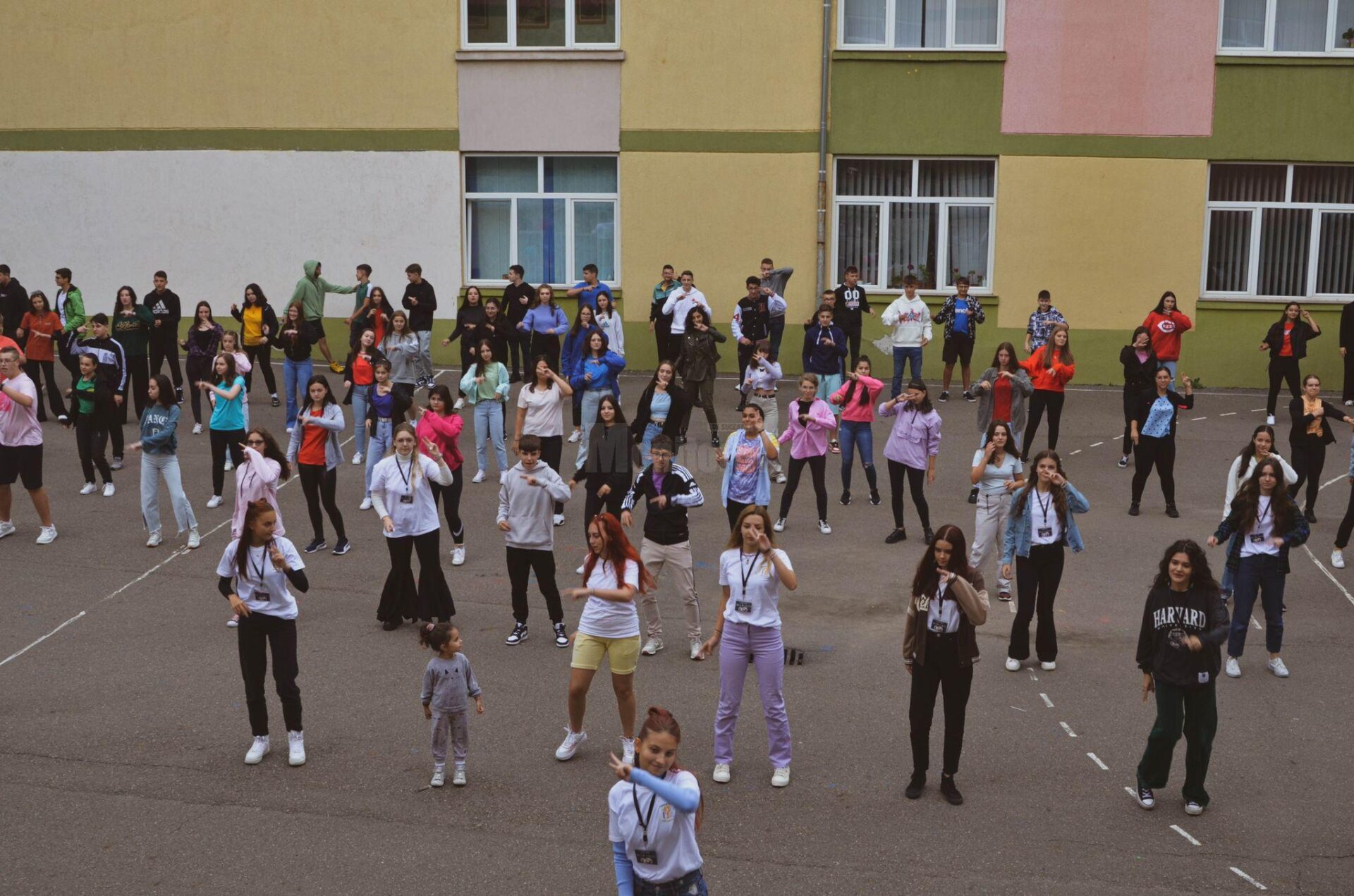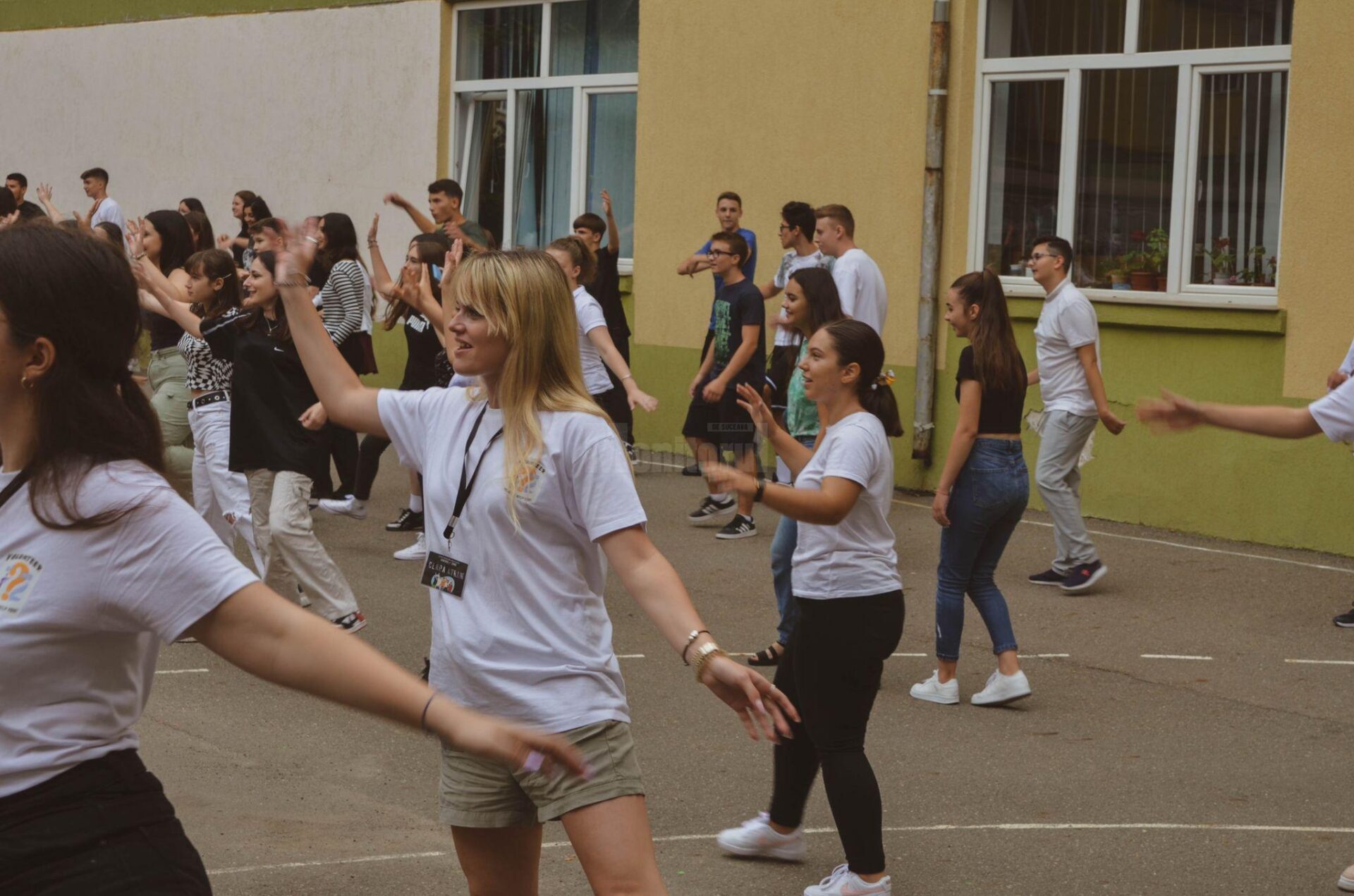 Pentru a încheia ultima săptămână de vacanță într-un stil caracteristic Colegiului „Mihai Eminescu”, bobocii au prezentat coregrafia învățată și celor din exterior, în cursul zilei de vineri, pe esplanada Casei de Cultură.