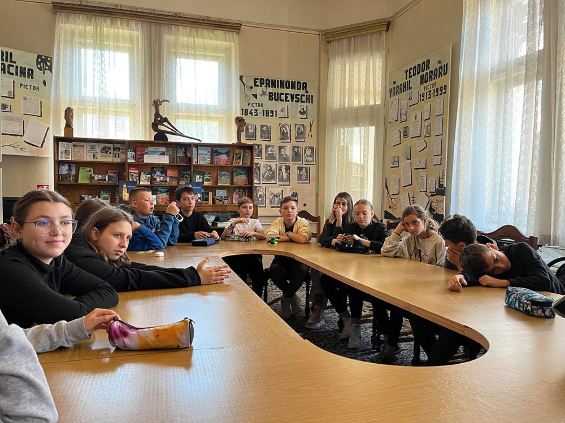 Una dintre activitățile școlii de vară s-a desfășurat laBiblioteca „G.T. Kirileanu” Vatra Dornei. Copiii, coordonați de prof. Alina Vasiluț și bibliotecara Doina Pușcașu, au purtat discuții libere pe teme de literatură, au vorbit despre lectură, despre carte și bibliotecă, „teme care vor fi întotdeauna pionul esențial în educație”.