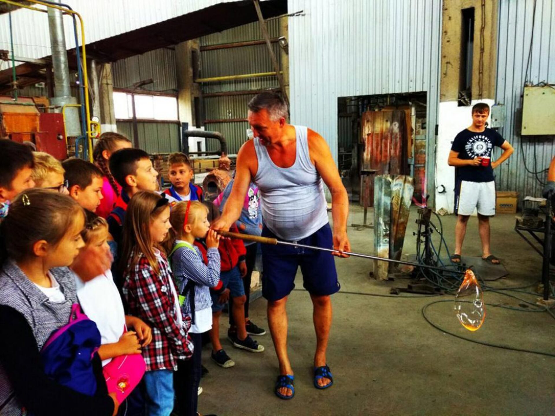 În ziua de joi, la Fabrica de Sticlă Suceava, copiii au fost profund impresionați de procesul magic prin care bulgărele incandescent din mâna meșterului sticlar s-a transformat într-o vază.