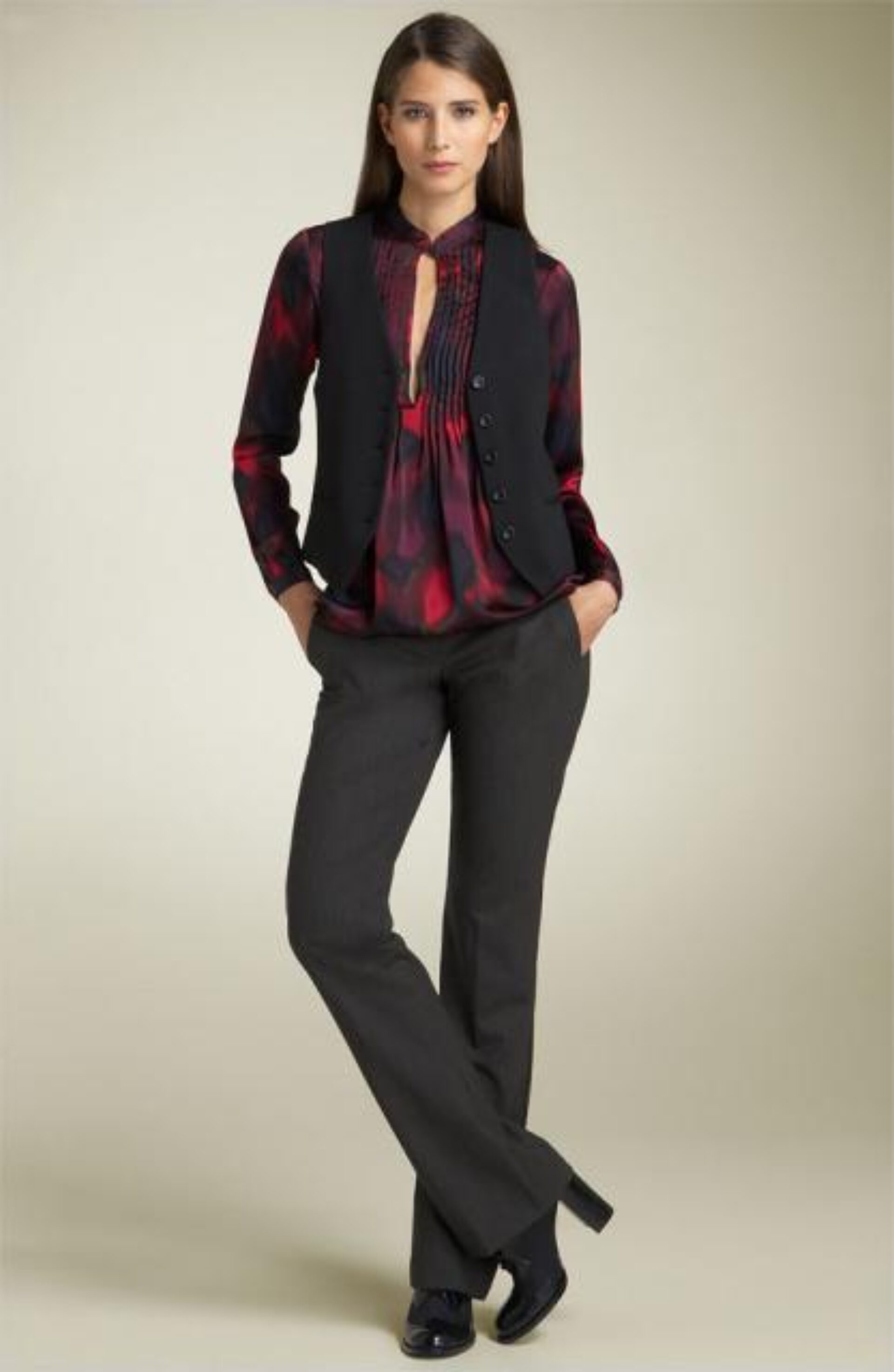 Tonul tendinței feminin-masculin a fost dat de apariția neașteptată a vestei bărbătești ca element central al colecțiilor de modă. Purtată împreună cu o pereche de pantaloni eleganți, cu pantaloni scurți sau chiar cu o fustă, vesta este un obiect vestimentar versatil, care se poate adapta și combina cu orice, pentru a satisface și preferințele vestimentare ale celor mai pretențioase doamne.
