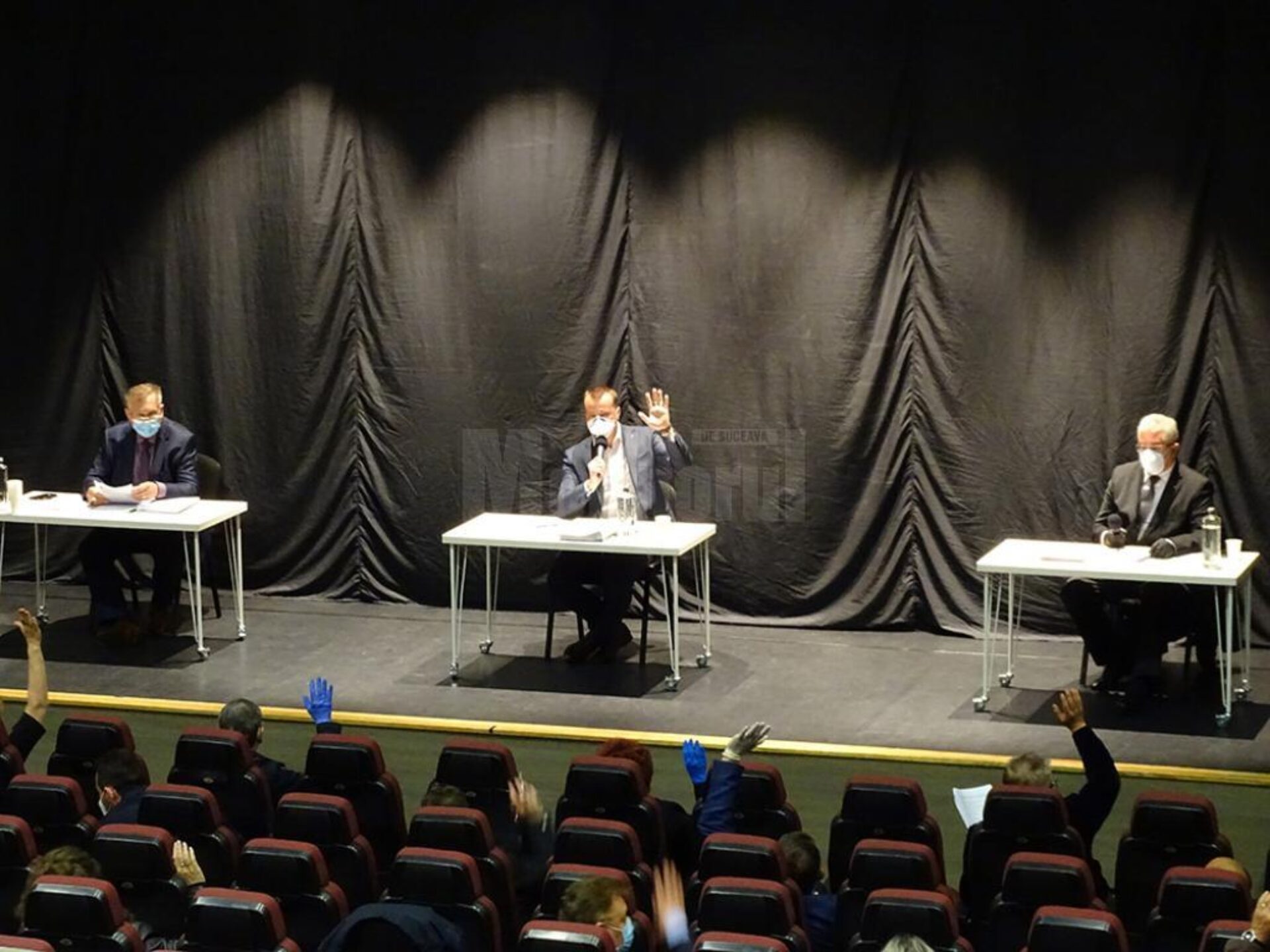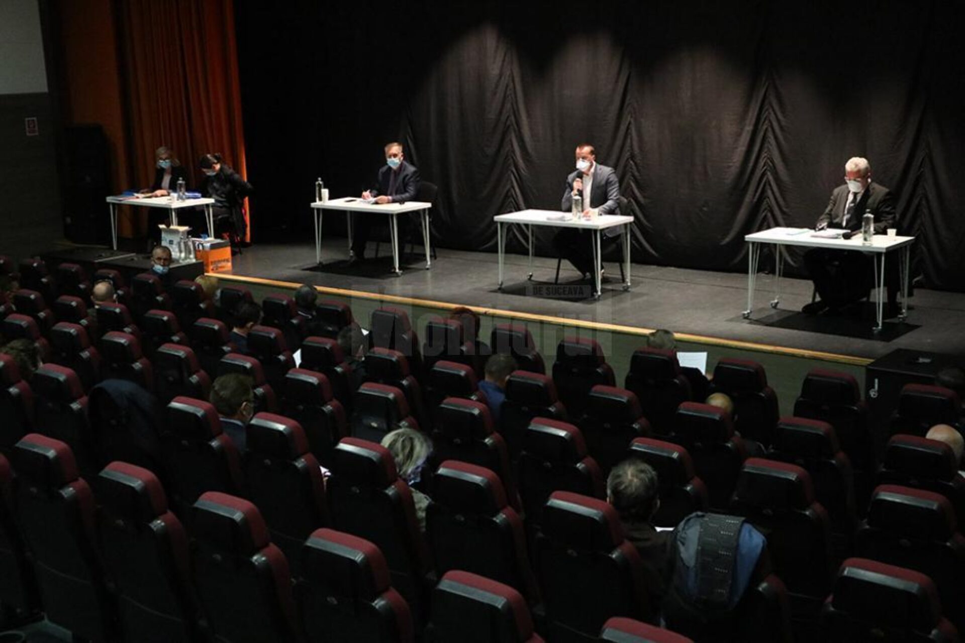 Prima ședință față în față a Consiliului Local Suceava, de la declararea pandemiei de coronavirus, a avut loc într-un cadru inedit – în sala de spectacole a Centrului Cultural Bucovina, care găzduiește Teatrul “Matei Vișniec” și Cinematograful Modern.