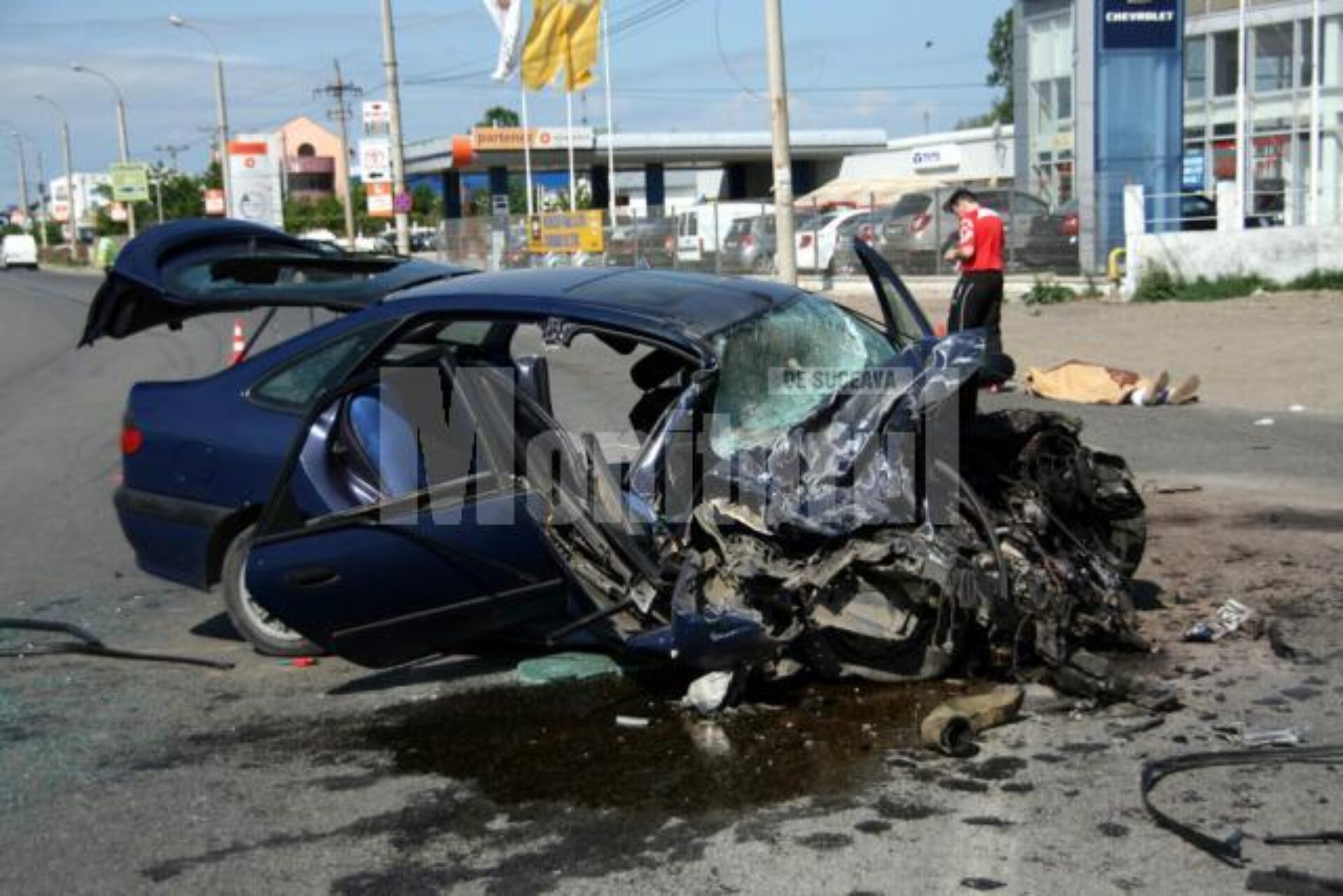 Impactul dintre cele două mașini a fost deosebit de violent, autoturismul Renault Laguna fiind pur și simplu transformat într-un morman de fiare contorsionate.
